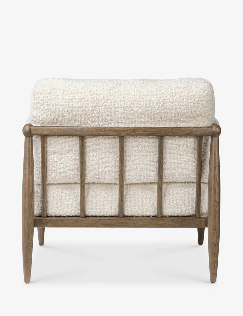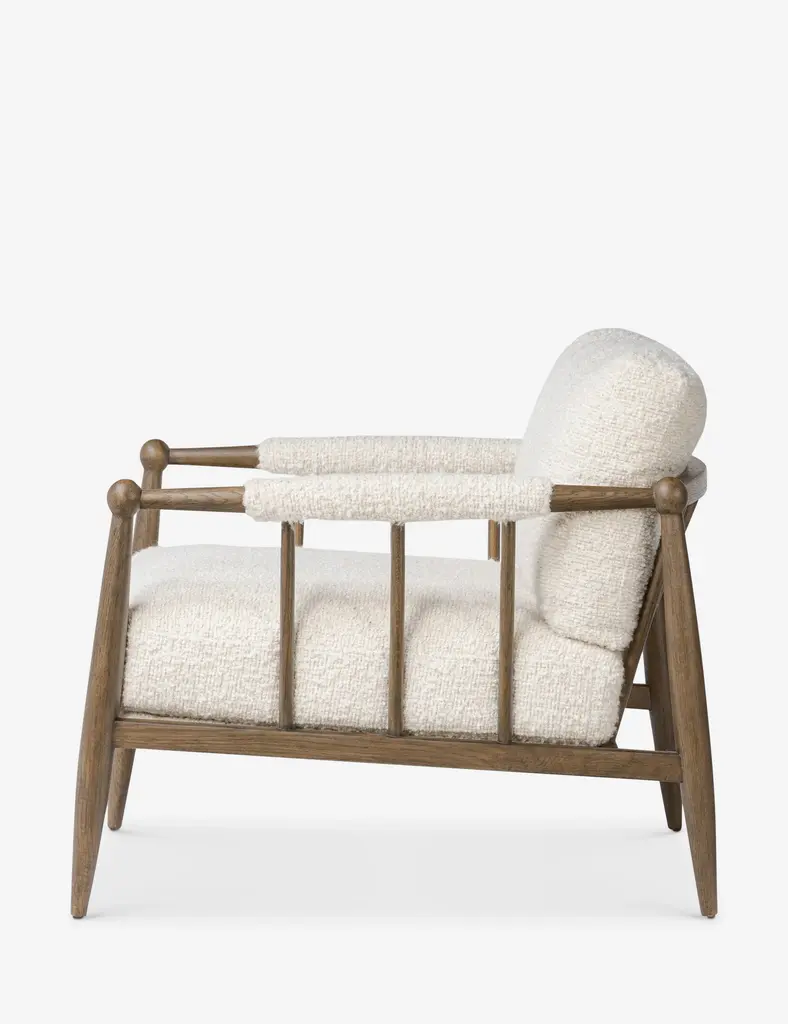 Four Hands brings their exceptional craftsmanship to a timeless collection rooted in Amber Lewis' perennial California style. Spindle and bauble details add fresh perspective to the timeless silhouette of this modern accent chair. Its plush, cushioned seat creates an inviting ambiance, making this occasional chair ideal for a living room or den.