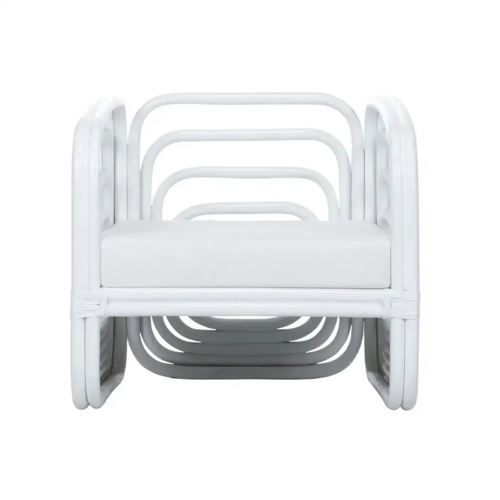CREATE YOUR OWN TROPICAL OASIS UNDER A PERGOLA, IN A POOL HOUSE OR IN YOUR COASTAL HOME WITH THE WATERFALL TUB CHAIR. THE HAND CURVED RATTAN FRAME FEATURES A LOW PROFILE DESIGN THAT IS BOTH MODERN AND TIMELESS. A MUSLIN CUSHION HAS BEEN ADDED FOR COMFORT.