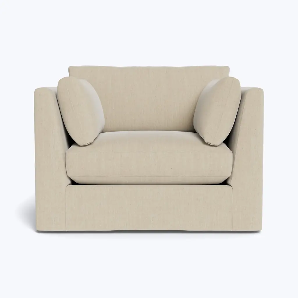 Discover the art of living in comfort with the Watermill Slipped Chair 1/2, an exclusive offering from abc carpet & home. This chair's oversized design offers unparalleled coziness, making it perfect for curling up with a book or lounging with loved ones. Featuring a modern, clean-lined silhouette, this chair seamlessly blends into any decor, whether modern or traditional. The Watermill Collection features blend-down cushions that combine the resilience of dense foam with the luxurious softness of feather down. These cushions are carefully washed to meet hypoallergenic standards, ensuring a comfortable and safe environment for you and your loved ones. The sustainably sourced Goodwood frame underscores our commitment to eco-conscious manufacturing practices, promising a chair that invites a lifetime of cherished memories at home. With dimensions of 47 inches in width, 38 inches in depth, and 33 inches in height, and a seat height of 17 inches and seat depth of 24 inches, this chair provides ample space for relaxation. Customize your Watermill Chair 1/2 with Cobble Hill's wide range of color and fabric combinations, offering more than 35 options to suit your unique style and preferences. Whether it's the Crypton Performance Blend or Kelley Performance Velvet, rest assured that each upholstery option is durable and easy to clean. From bold hues to subtle tones, our wide selection ensures that your chair reflects your unique taste and personality. Simply select your dream color and fabric scheme, and your custom chair will be shipped to your home in 8-10 weeks. Proudly made in the USA, this chair exemplifies quality craftsmanship and attention to detail. Care instructions are simple: spot clean with mild detergent, and for deeper cleaning, professional services are recommended. Regular vacuuming helps maintain its pristine appearance for years to come. Indulge in foam-wrapped seat cushions with a blend of fiber and feather/down for even fill distribution, and back cushions featuring a fiber and feather blend encased in a down-proof casing. The fill is Responsible Down Standard certified and meets USDA hypoallergenic regulations, guaranteeing peace of mind for allergy sufferers. Additionally, this chair is free from flame retardant chemicals, prioritizing safety and environmental sustainability. Upgrade your home and elevate your style with the Watermill Slipped Chair 1/2 from Cobble Hill.