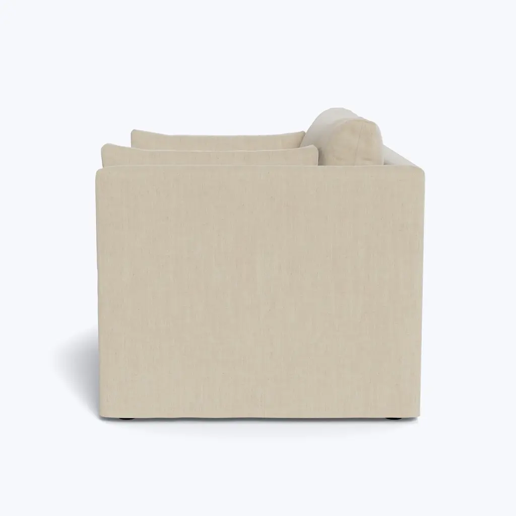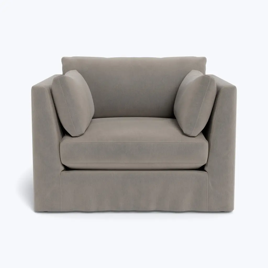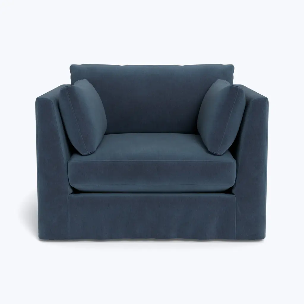 Discover the art of living in comfort with the Watermill Slipped Chair 1/2, an exclusive offering from abc carpet & home. This chair's oversized design offers unparalleled coziness, making it perfect for curling up with a book or lounging with loved ones. Featuring a modern, clean-lined silhouette, this chair seamlessly blends into any decor, whether modern or traditional. The Watermill Collection features blend-down cushions that combine the resilience of dense foam with the luxurious softness of feather down. These cushions are carefully washed to meet hypoallergenic standards, ensuring a comfortable and safe environment for you and your loved ones. The sustainably sourced Goodwood frame underscores our commitment to eco-conscious manufacturing practices, promising a chair that invites a lifetime of cherished memories at home. With dimensions of 47 inches in width, 38 inches in depth, and 33 inches in height, and a seat height of 17 inches and seat depth of 24 inches, this chair provides ample space for relaxation. Customize your Watermill Chair 1/2 with Cobble Hill's wide range of color and fabric combinations, offering more than 35 options to suit your unique style and preferences. Whether it's the Crypton Performance Blend or Kelley Performance Velvet, rest assured that each upholstery option is durable and easy to clean. From bold hues to subtle tones, our wide selection ensures that your chair reflects your unique taste and personality. Simply select your dream color and fabric scheme, and your custom chair will be shipped to your home in 8-10 weeks. Proudly made in the USA, this chair exemplifies quality craftsmanship and attention to detail. Care instructions are simple: spot clean with mild detergent, and for deeper cleaning, professional services are recommended. Regular vacuuming helps maintain its pristine appearance for years to come. Indulge in foam-wrapped seat cushions with a blend of fiber and feather/down for even fill distribution, and back cushions featuring a fiber and feather blend encased in a down-proof casing. The fill is Responsible Down Standard certified and meets USDA hypoallergenic regulations, guaranteeing peace of mind for allergy sufferers. Additionally, this chair is free from flame retardant chemicals, prioritizing safety and environmental sustainability. Upgrade your home and elevate your style with the Watermill Slipped Chair 1/2 from Cobble Hill.