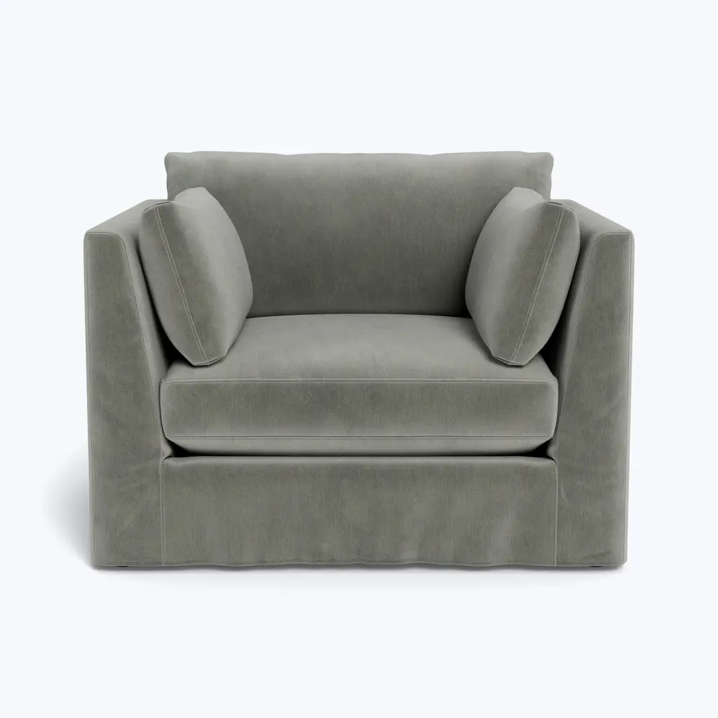 Discover the art of living in comfort with the Watermill Slipped Chair 1/2, an exclusive offering from abc carpet & home. This chair's oversized design offers unparalleled coziness, making it perfect for curling up with a book or lounging with loved ones. Featuring a modern, clean-lined silhouette, this chair seamlessly blends into any decor, whether modern or traditional. The Watermill Collection features blend-down cushions that combine the resilience of dense foam with the luxurious softness of feather down. These cushions are carefully washed to meet hypoallergenic standards, ensuring a comfortable and safe environment for you and your loved ones. The sustainably sourced Goodwood frame underscores our commitment to eco-conscious manufacturing practices, promising a chair that invites a lifetime of cherished memories at home. With dimensions of 47 inches in width, 38 inches in depth, and 33 inches in height, and a seat height of 17 inches and seat depth of 24 inches, this chair provides ample space for relaxation. Customize your Watermill Chair 1/2 with Cobble Hill's wide range of color and fabric combinations, offering more than 35 options to suit your unique style and preferences. Whether it's the Crypton Performance Blend or Kelley Performance Velvet, rest assured that each upholstery option is durable and easy to clean. From bold hues to subtle tones, our wide selection ensures that your chair reflects your unique taste and personality. Simply select your dream color and fabric scheme, and your custom chair will be shipped to your home in 8-10 weeks. Proudly made in the USA, this chair exemplifies quality craftsmanship and attention to detail. Care instructions are simple: spot clean with mild detergent, and for deeper cleaning, professional services are recommended. Regular vacuuming helps maintain its pristine appearance for years to come. Indulge in foam-wrapped seat cushions with a blend of fiber and feather/down for even fill distribution, and back cushions featuring a fiber and feather blend encased in a down-proof casing. The fill is Responsible Down Standard certified and meets USDA hypoallergenic regulations, guaranteeing peace of mind for allergy sufferers. Additionally, this chair is free from flame retardant chemicals, prioritizing safety and environmental sustainability. Upgrade your home and elevate your style with the Watermill Slipped Chair 1/2 from Cobble Hill.