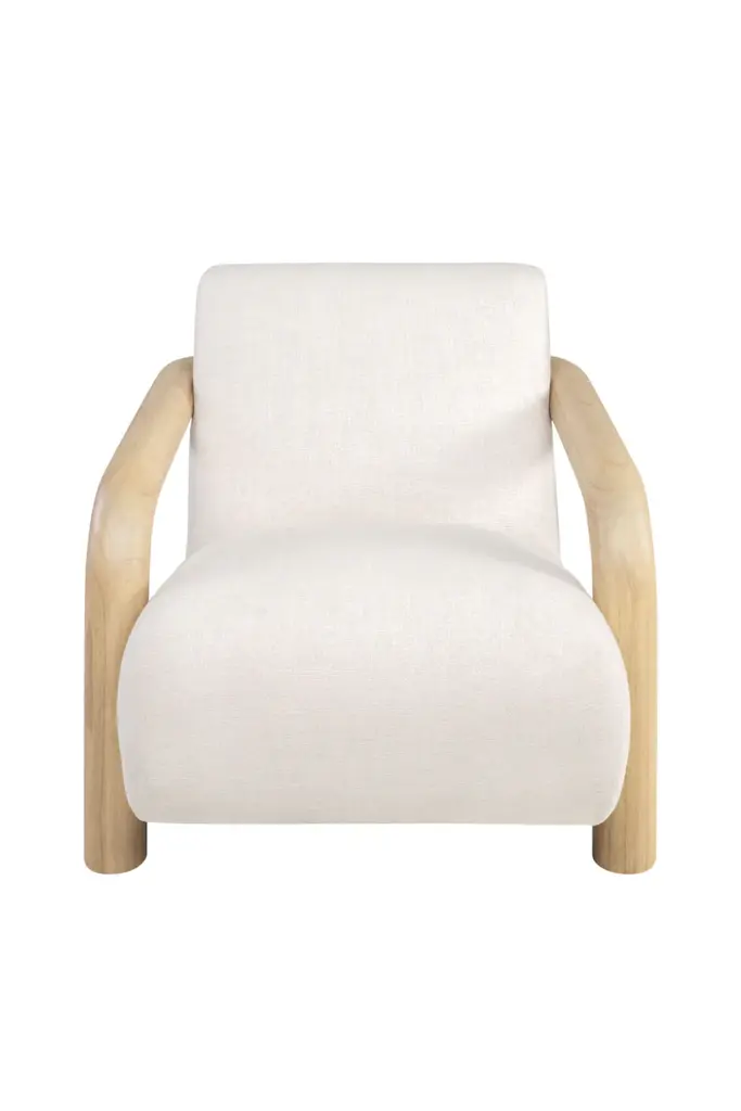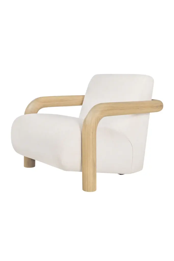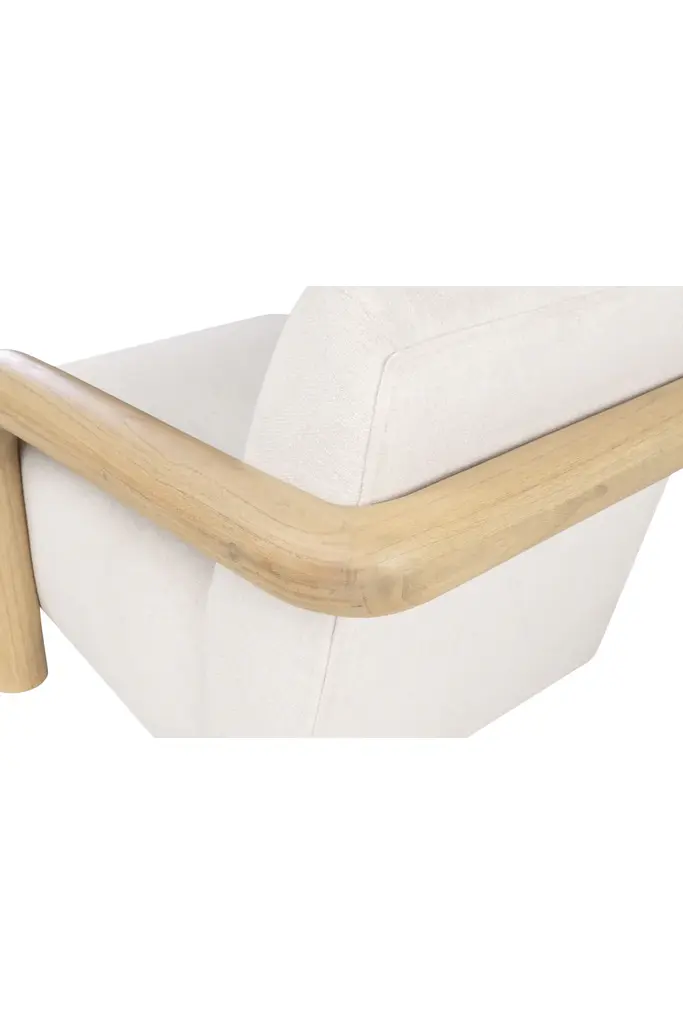 Sleek and sophisticated, the Goma Lounge Chair by Versmissen features a Mindi wood frame that flows smoothly into its armrests. The elegant off-white upholstery comes with a rectangular cushion, exuding plush comfort and style. Its clean lines and understated design effortlessly enhance any interior space, bringing a touch of modern elegance to your home.
