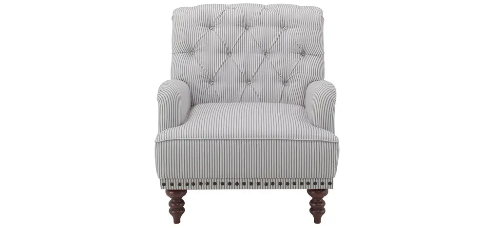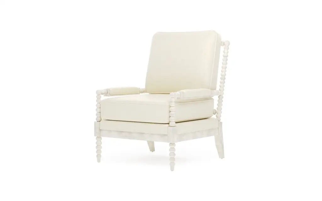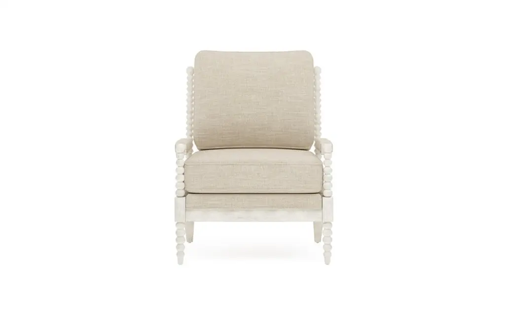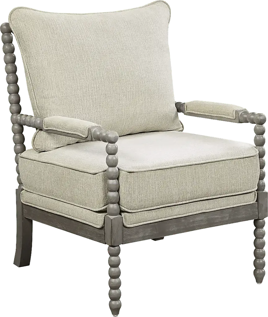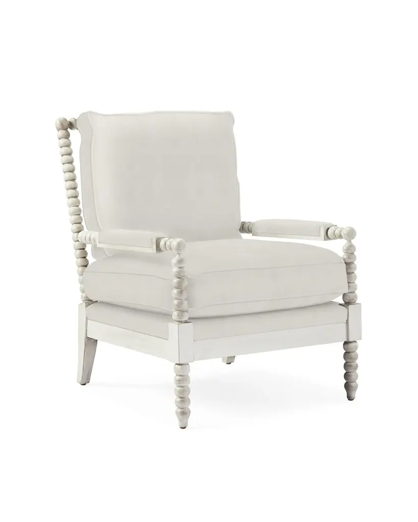This elegant White Spindle Frame Accent Chair with Track Arms is a perfect addition to any traditional bedroom. Upholstered in grey fabric and crafted with spindle detailing and track arms, this chair exudes a classic charm that will elevate the look of your space.