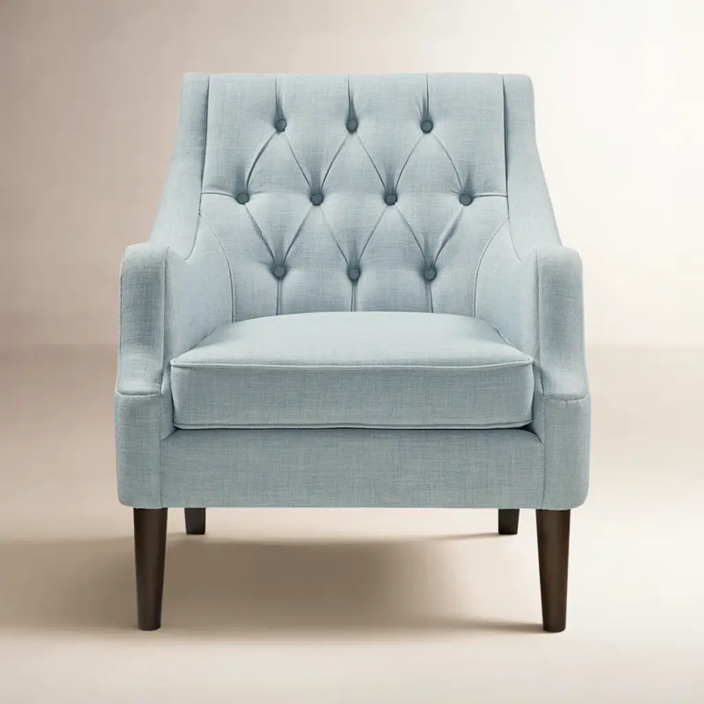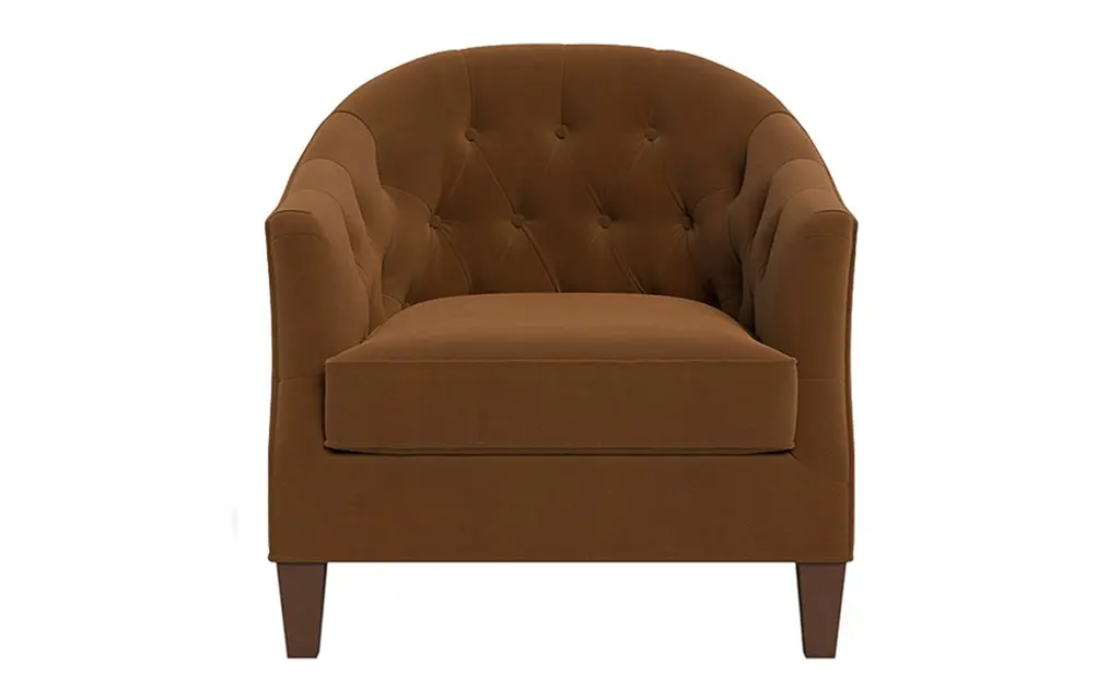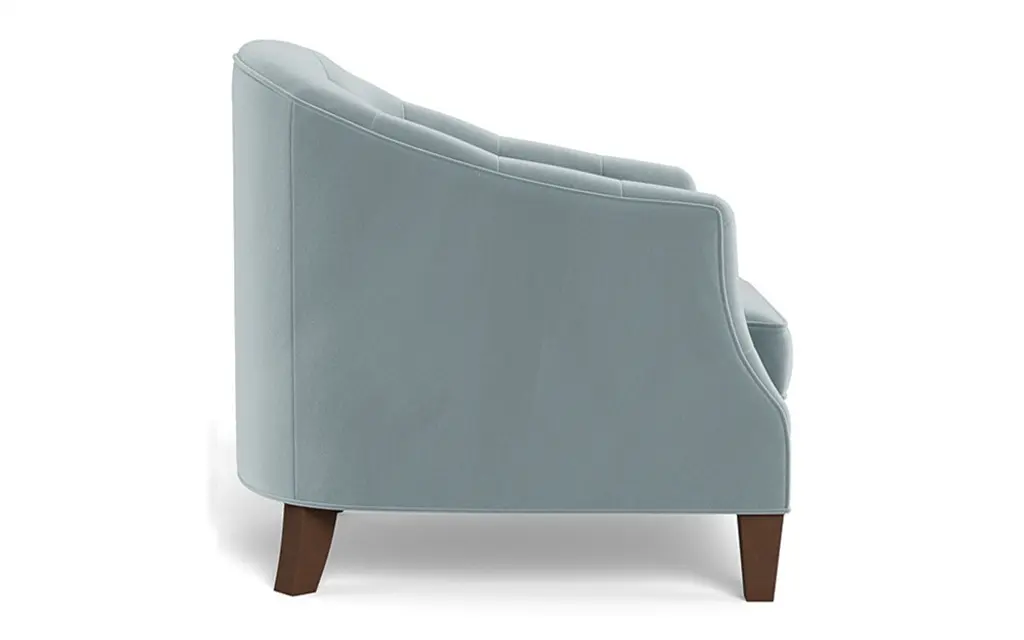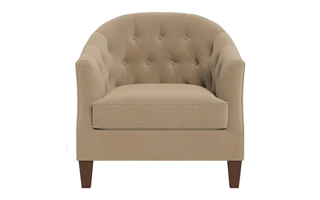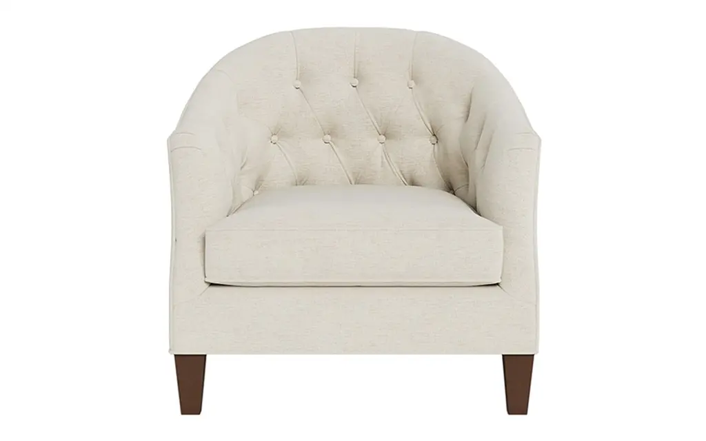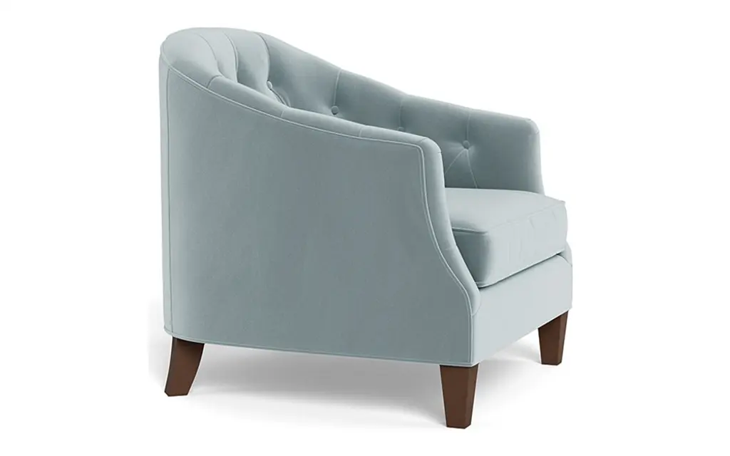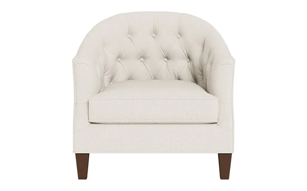 Our Willa chair features a button-tufted back, tapered wood legs, and a curved frame that lends a touch of sweetness to the silhouette. The seat cushion provides a firmer sit that remains both supportive and comfortable. Willa is the perfect blend of elevated and inviting—a welcome addition to sophisticated yet cozy living spaces.