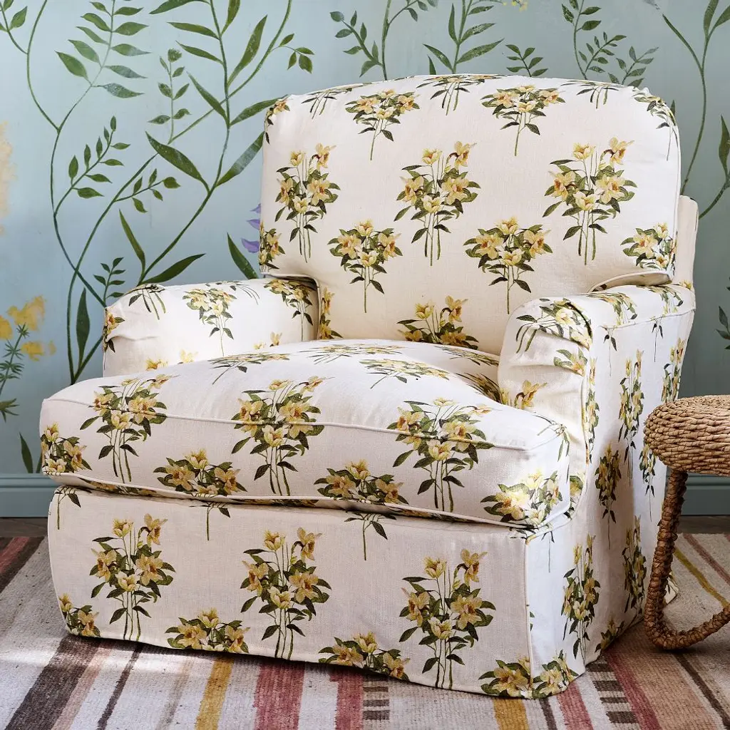 Cozy and oh-so comfortable. With a printed slipcover, English arm, T-cushions, and an extra-deep seat, this is the cottage-style chair you’ve been dreaming about. An FSC®-certified frame and cushy natural padding make it easy to love and live with.