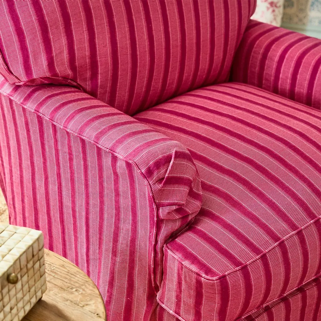 Cozy and oh-so comfortable. With a printed slipcover, English arm, T-cushions, and an extra-deep seat, this is the cottage-style chair you’ve been dreaming about. An FSC®-certified frame and cushy natural padding make it easy to love and live with.