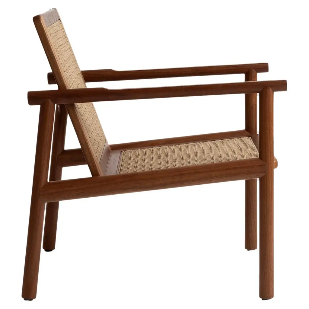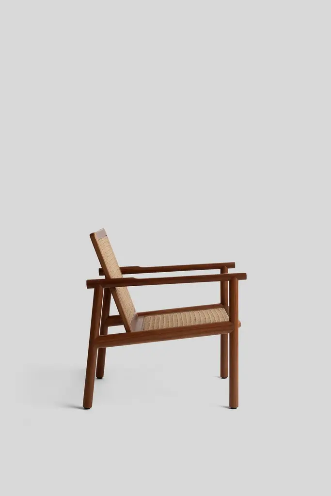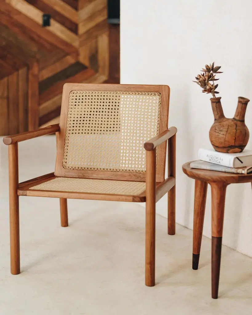 The armchair has a simple and very lightweight structure. Its clean lines, with smooth and rounded edges, blend with the meticulous handwoven pattern. In this handwoven fabric, crafted by a family of artisans from Bacalar, Mexico, the "partridge eye" technique is used with cotton or nylon thread.The design of Cocom armchair draws its inspiration from the wicker rockers and armchairs traditionally woven in Yucatan. Nowadays, this tradition is fading away, along with the art of hand-weaving chairs. That's why the intention behind the design of the Cocom collection is to remember and reclaim that heritage.This piece merges tradition with modernity and elevate craftsmanship to its highest expression in terms of attention to detail. _design: Ania Wolowskafinish: waxedweaving: cottonavailable in: Caribbean Walnut_Our pieces have a finish based on natural waxes and oils that protect the surface, accentuate the grain and texture and preserve the warm feeling of the wood.All the wood that we work with to create our pieces comes from local "ejidos" (communal land) with responsible forestry management programs and certificates._Wood is a natural and organic element. It will vary in color and grain according to each wood plank’s unique characteristics and applied finish. The image shows only one hue of many, making each chair a one-of-a-kind piece of furniture.