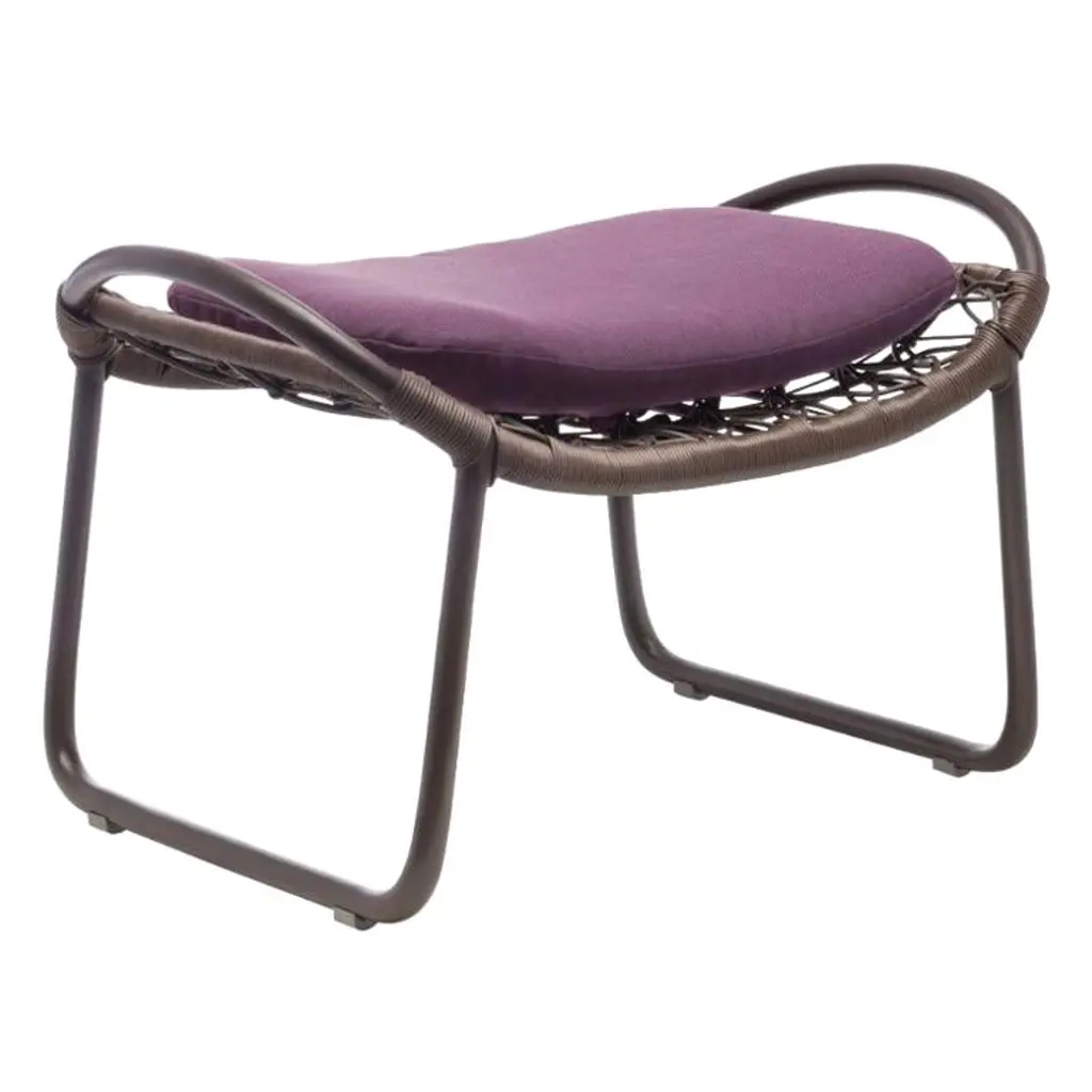Elevate your outdoor space with the Coco footrest by Unopiu. Crafted with a chic aluminum frame in graphite or syrah, and finished with a choice of ecru or dark brown cord, this footrest complements the Coco lounge chair for a sophisticated and coordinated set. Request custom color combinations for a truly exclusive touch.