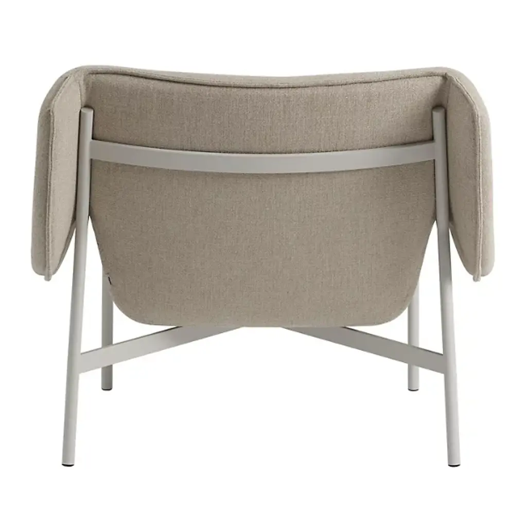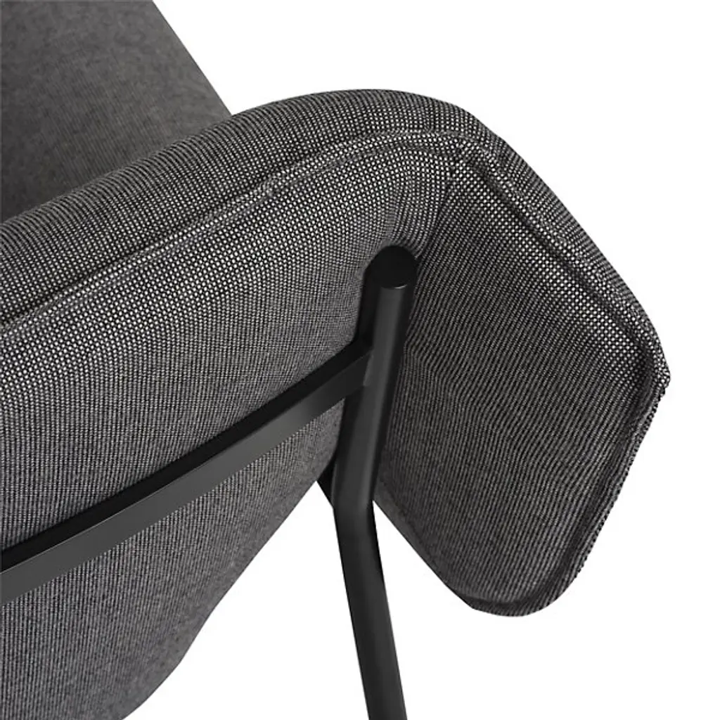 Give a clever, casual character to interiors with the modish and memorable lines of the Wrap Lounge Chair from Muuto. A daring design from Normal Studio, the actual construction is anything but average. It ascends from a strong, slender frame of powder-coated steel resting on plastic glides. Its back is angled slightly, holding a seat and inner shell made from recycled plastic for a sustainable style, while a layered foam cushion provides signature softness. This padding is then encased in a textile ‘wrap’ from the fine-quality Kvadrat and Rohleder that hangs like a blanket, offering abstract appeal while softening metal lines.