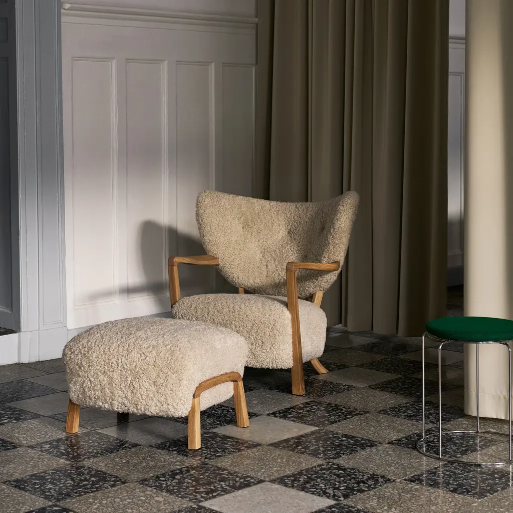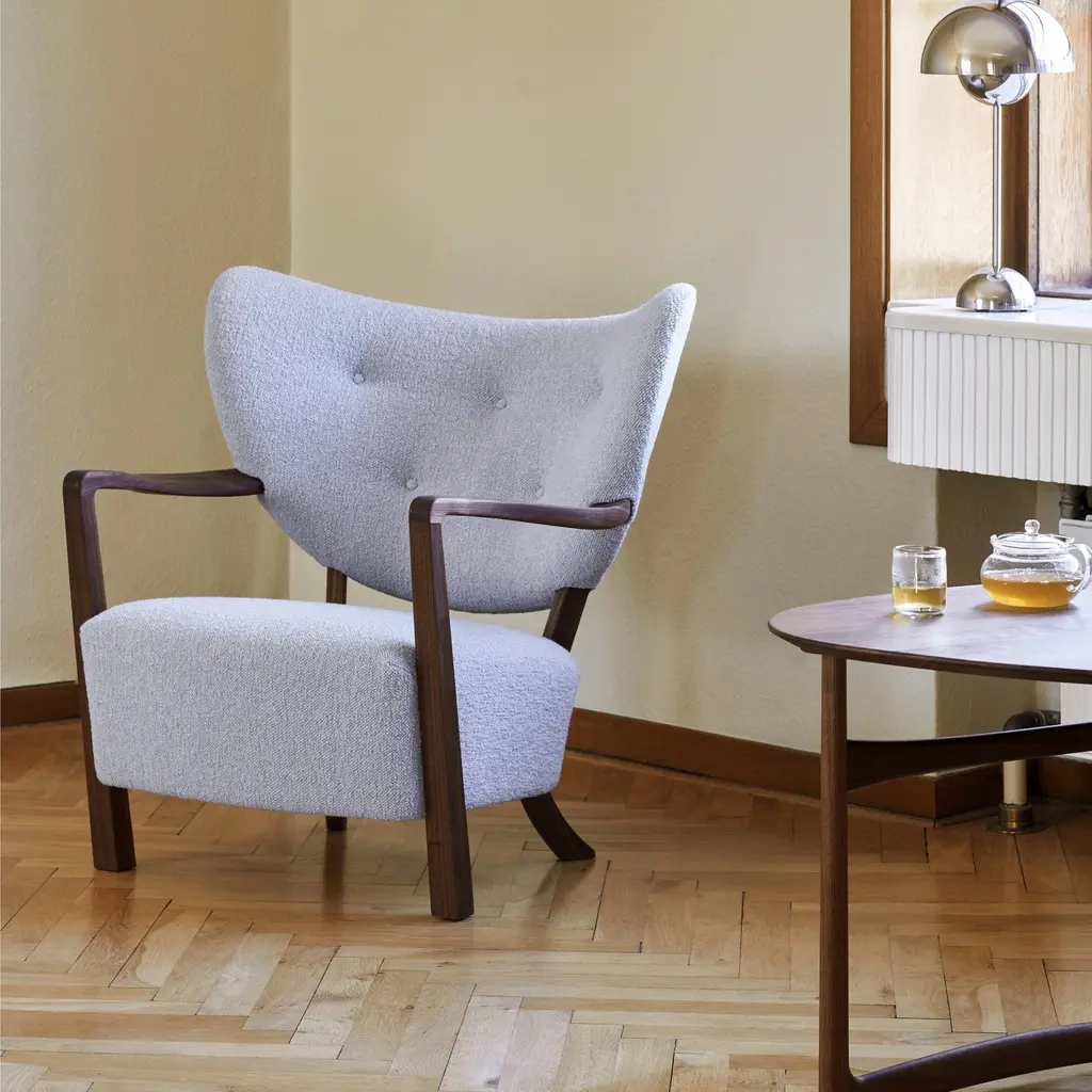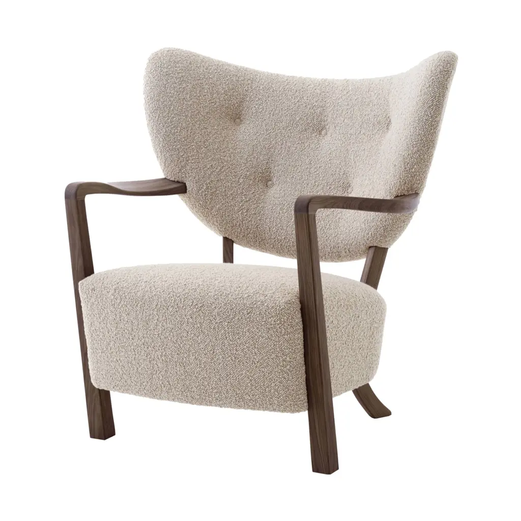 Danish modern traces its beginnings back to the 1930s and Wulff pays tribute to its pacesetting handcrafted precursors. Revealing superior craftsmanship and outstanding comfort, luxuriantly soft upholstery covers the seat and backrest of this lounge chair for the living room or bedroom. With its armrest and legs in solid oak or walnut, both with an oiled finish, the upholstery choices include a range of fine premium textiles or genuine sheepskin.