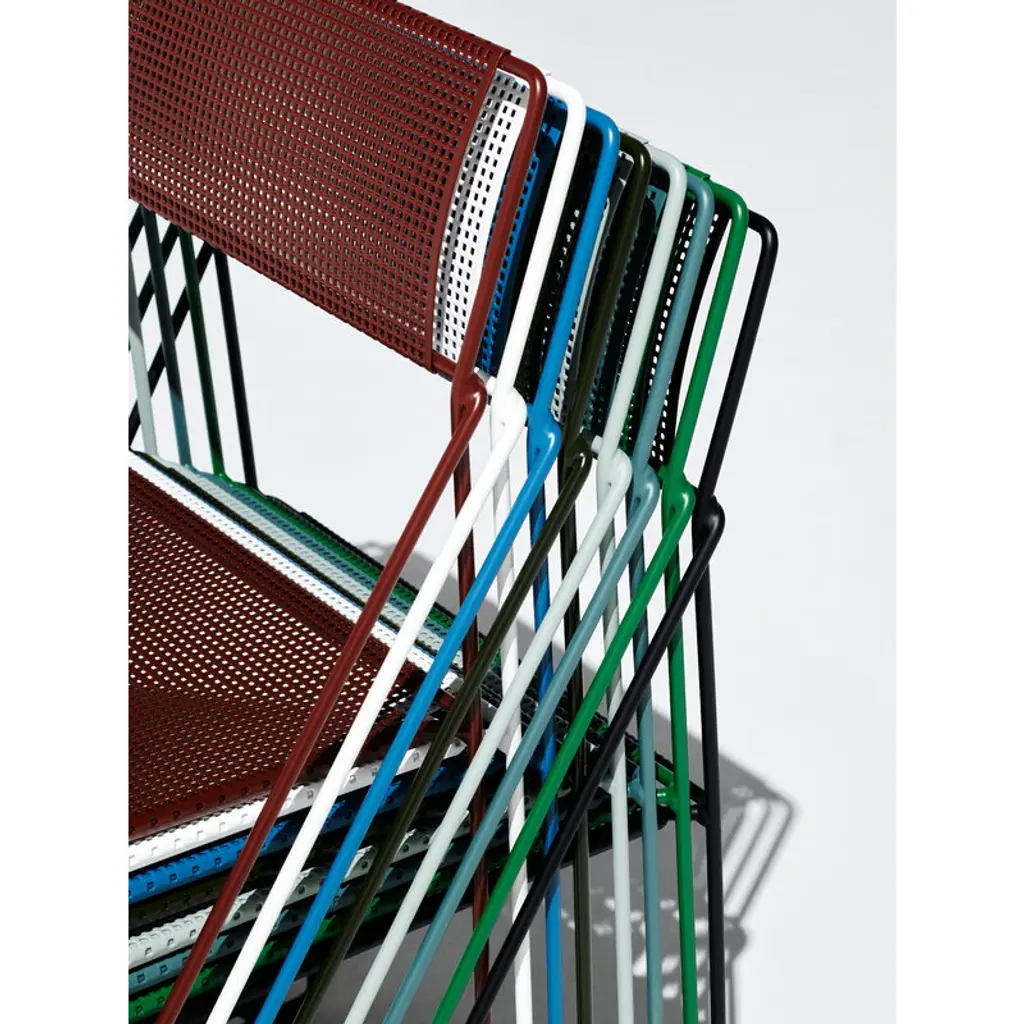 HAY’s X-Line chair combines lightness with elegance, making the chair a stylish choice for terraces, gardens and living rooms alike. Made of thin steel, the X-Line chair is based on a simple geometric leg structure that is shaped like the letter X. This design provides stability and strength to the sitter, while also delivering an esthetically appealing design that subtly flirts with industrial influences. The X-Line chair was originally designed in 1977 by architect Niels Jørgen Haugesen and manufactured by Magnus Olesen until 2025. Now, the Danish design brand HAY has reintroduced the metal chair to the delight of modern design enthusiasts.