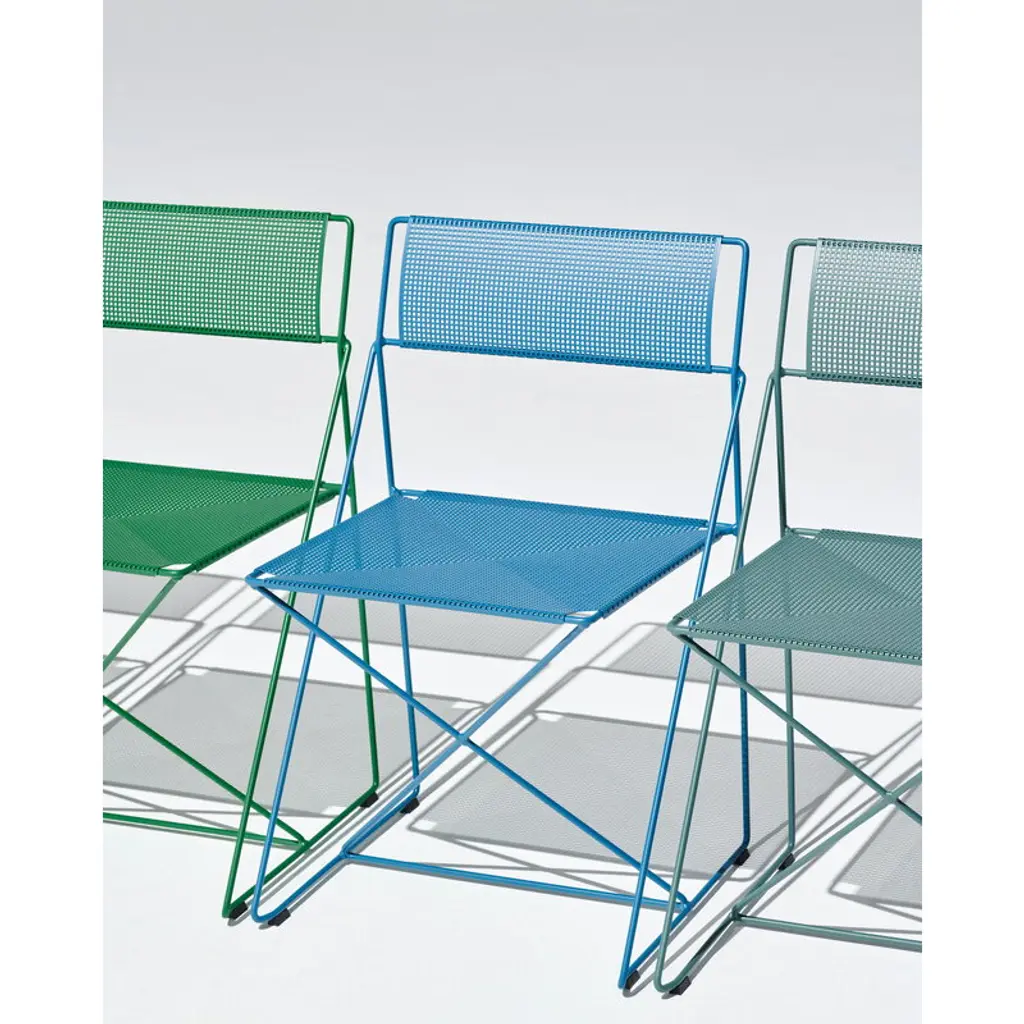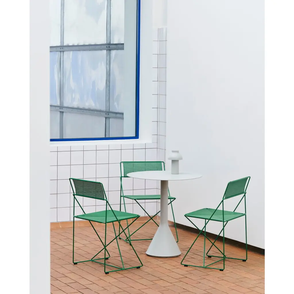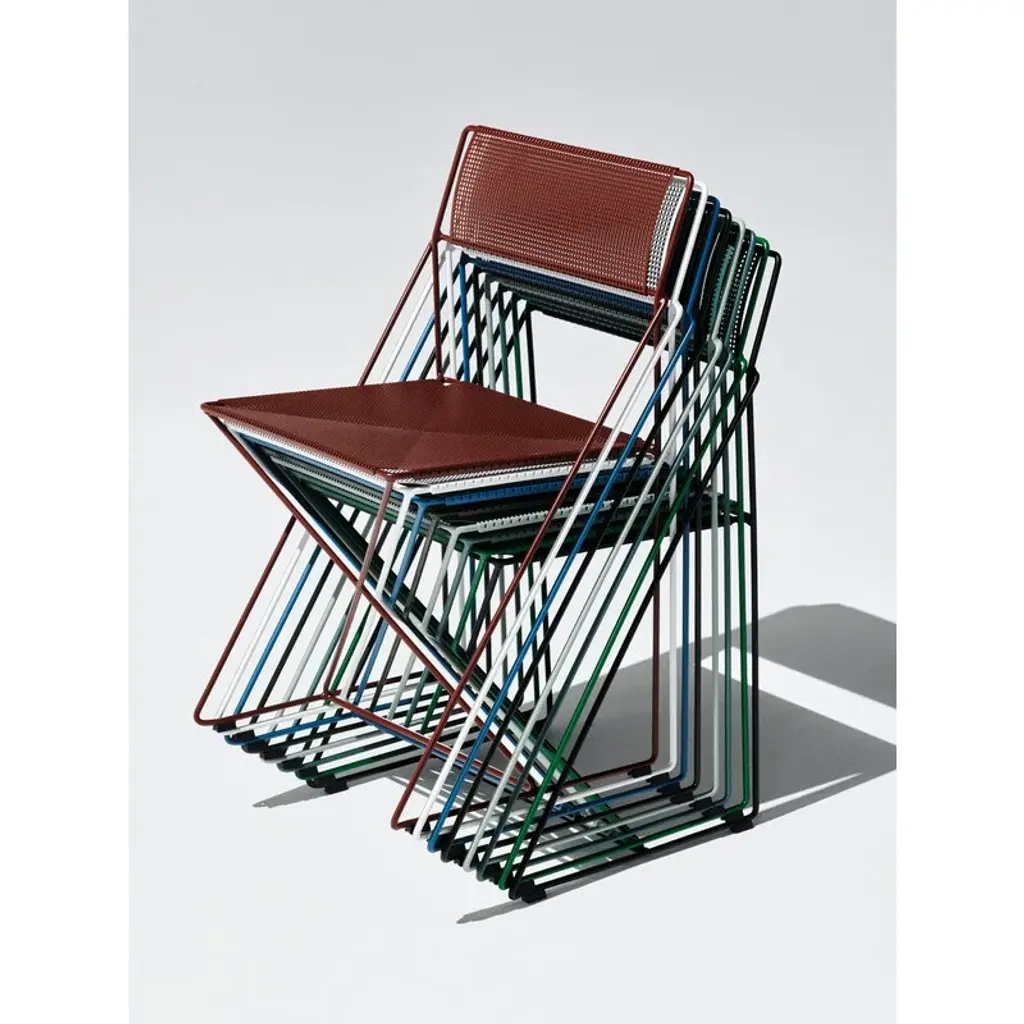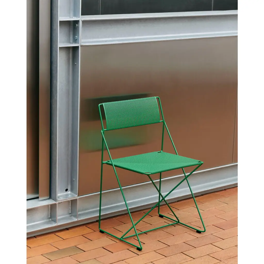 HAY’s X-Line chair combines lightness with elegance, making the chair a stylish choice for terraces, gardens and living rooms alike. Made of thin steel, the X-Line chair is based on a simple geometric leg structure that is shaped like the letter X. This design provides stability and strength to the sitter, while also delivering an esthetically appealing design that subtly flirts with industrial influences. The X-Line chair was originally designed in 1977 by architect Niels Jørgen Haugesen and manufactured by Magnus Olesen until 2025. Now, the Danish design brand HAY has reintroduced the metal chair to the delight of modern design enthusiasts.