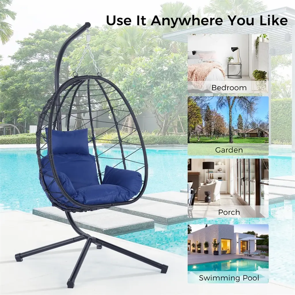 Our egg chair combines handwoven HDPE wicker with a fully-welded, powder-coated steel frame to create exceptionally durable patio furniture. The weather-resistant materials won't crack in sun or fade in rain, maintaining its elegant appearance season after season. The rust-proof metal stand ensures stability on any surface.