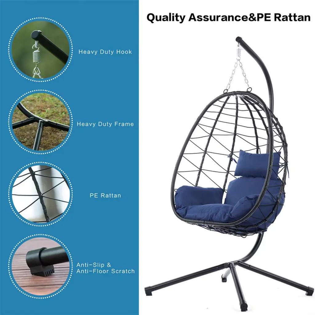 Xinghanzhenxuan Dark Blue Patio Accent Chairs, Hanging Swing Chair, Patio Hammock Chair For Balcony, Living Room, Bedroom