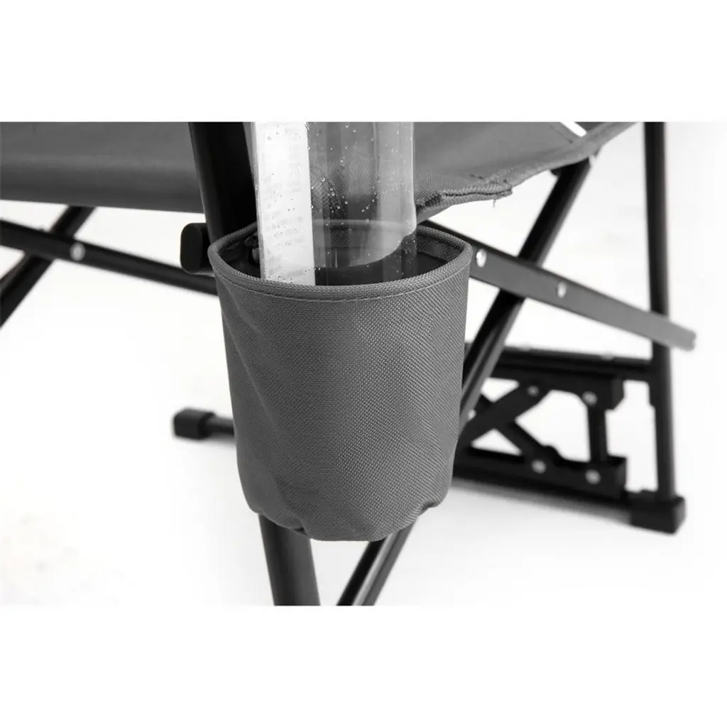 Experience premium relaxation with our oversized rocking camping chair featuring a high backrest and sturdy armrests. The breathable polyester fabric provides just the right amount of give while maintaining support, whether you're sitting upright or reclining.