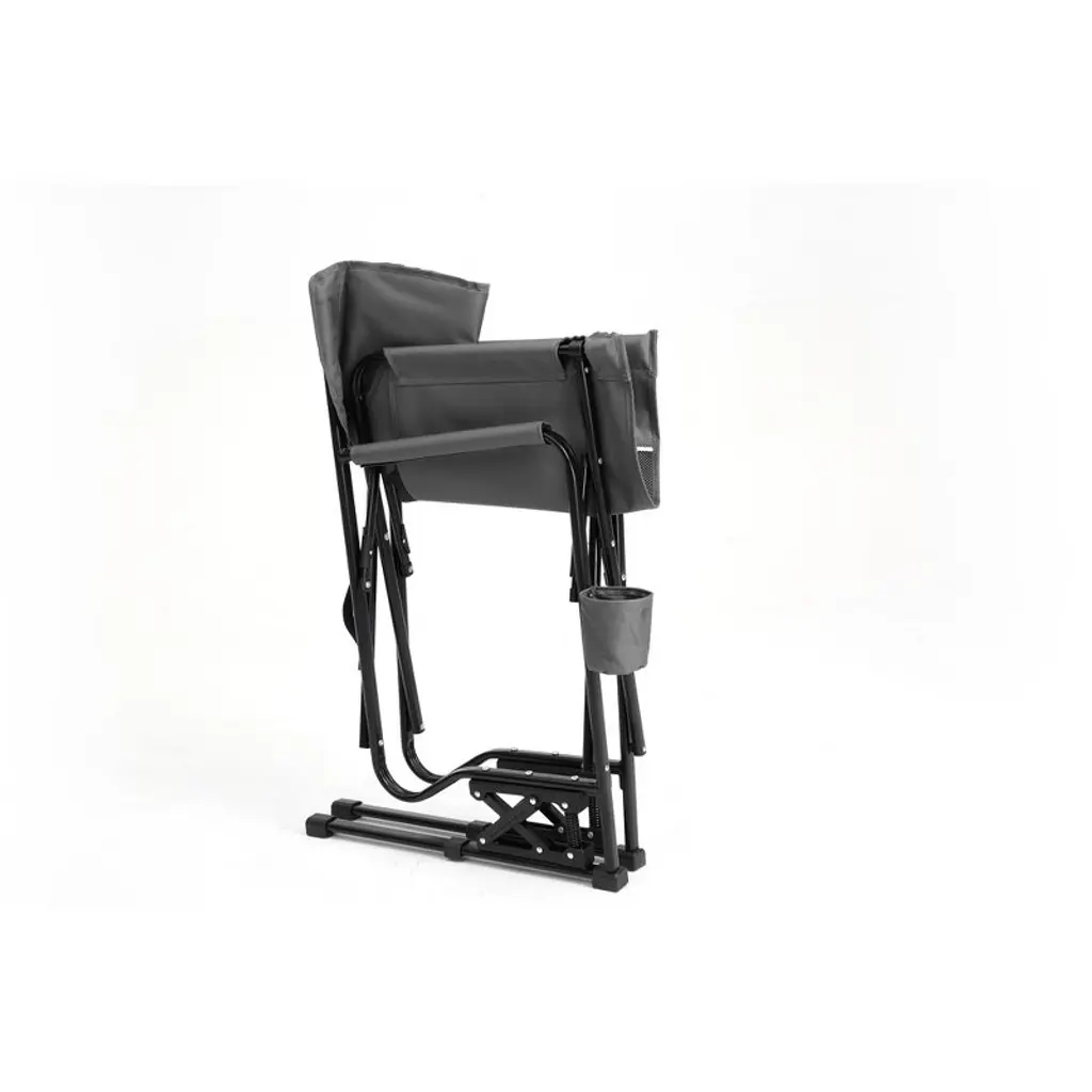 Xinghanzhenxuan Gray Patio Accent Chairs, Folding Chair With Drink Holder, High Backrest, Armrests For Patio, Beach, Hiking