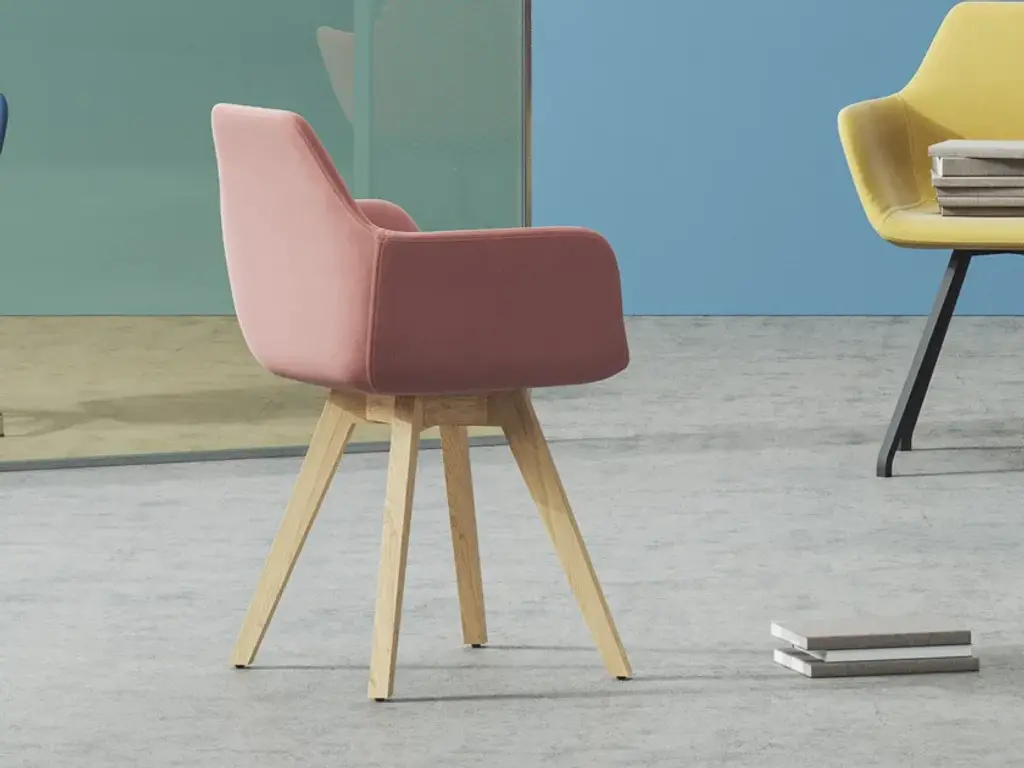 Y Wood is a chair with ash base and polyethylene shell.Y, the armchair introduced in 2015, has soft and moderate lines. Its shape, modern and with vintage recalls, allows a great comfort and a wonderful versatility, that makes it perfect to fit both in public and private spaces. The armchair is available in the outdoor version, stackable, and in the indoor one, with completely upholstered shell or with only a cushion, in the Y Soft version. Y is presented with steel or wood frame, available with different declinations.