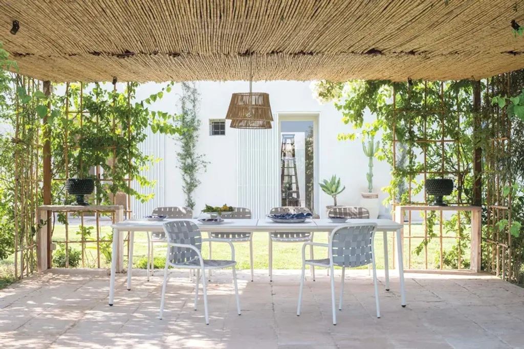 The woven elastic straps, joined in an innovative way to the sophisticated aluminium frame, give life to a collection defined by outstanding, eclectic style and superb comfort, perfectly suitable for outdoor uses. Yard is a complete range of furniture, made up of a chair, armchair, fixed tables, relaxing armchairs, coffee tables of various sizes and a sunbed. The signature feature of the Yard collection is the way it mixes materials, such as stainless steel or ash with aluminium. The collection is completed with counter tables of various sizes, for both contract and residential settings.