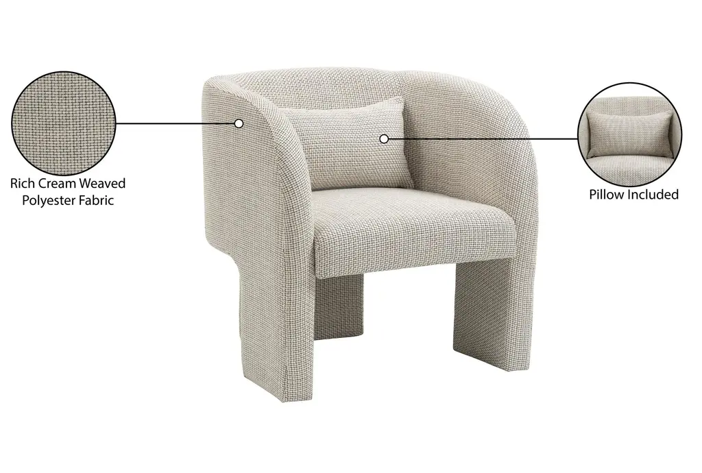 Zawyer Cream Weaved Polyester Fabric Accent Chair