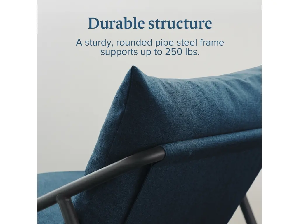 The Audrey Sling Chair is that cozy and elevated accent piece that can spruce up any room in the house. Expertly built with the highest quality structure, comfort, and style, this 2022 GOOD DESIGN® winning seat combines a rounded pipe steel frame with foam cushioning and soft, textured fabric available in multiple colors to match your interior. With deep seating, a relaxed sling design, and shredded foam fill, the Audrey Chair allows you to sit optimally supported for hours on end, whether you choose to curl up or sprawl out. Made durable enough to support up to 250 lbs., you can rest assured it'll hold up over many years of enjoyment. It's packaged efficiently into one small and easy to maneuver box with all tools and instructions included, so you can set it up in under 30 minutes. Whether added to your family room, bedroom, or office, the Audrey Sling Chair makes any space feel more like home.