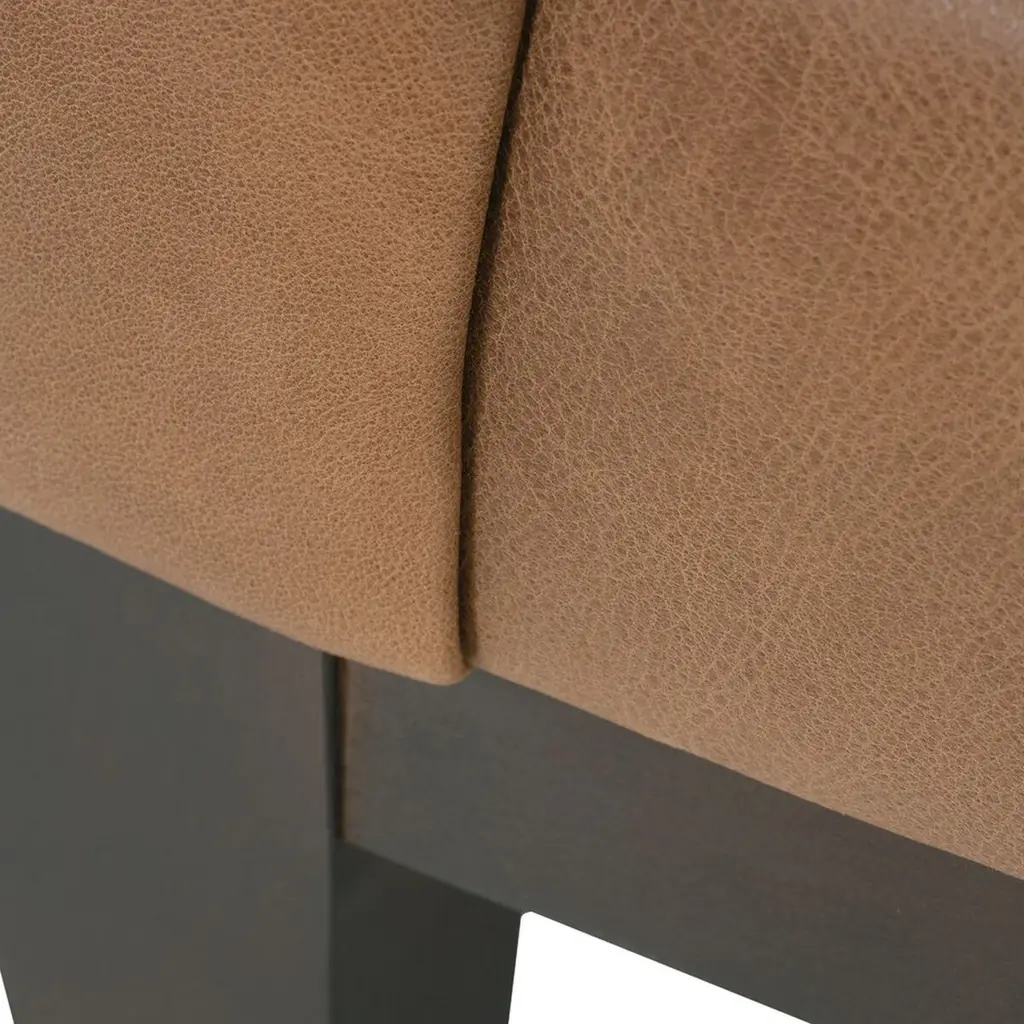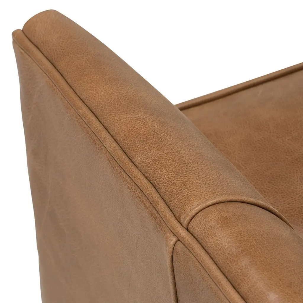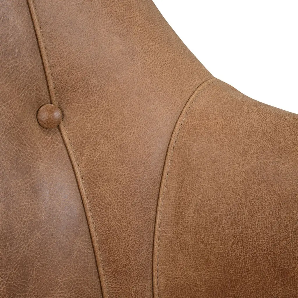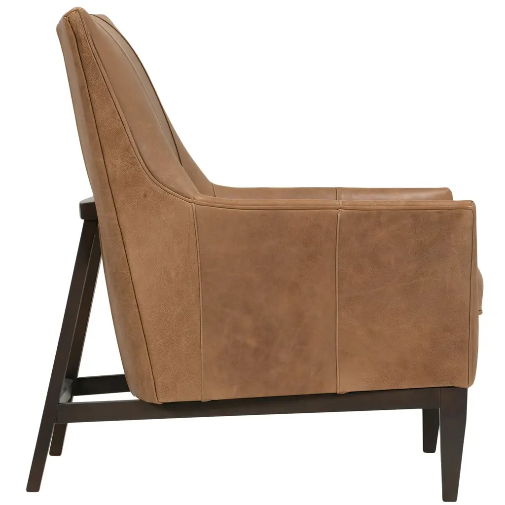Modern with a touch of traditional style, the Zoya Leather Accent Chair is perfectly suited to a variety of aesthetics. This versatile seating option features a modern open wood frame, while the leather includes classic button tufting. The Brazilian hide is dyed and treated with a darker wax, which is then brushed to a distressed texture that will continue to develop the look of a vintage piece over time.