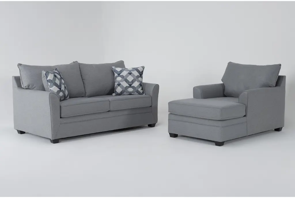 Jaylen Cement Grey Fabric 2 Piece 74" Sofa & Chaise Set