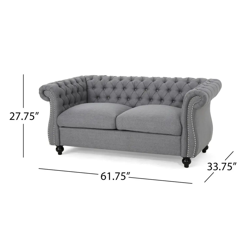 2 Seater Loveseat Sofa With Rolled Arms - Gray
