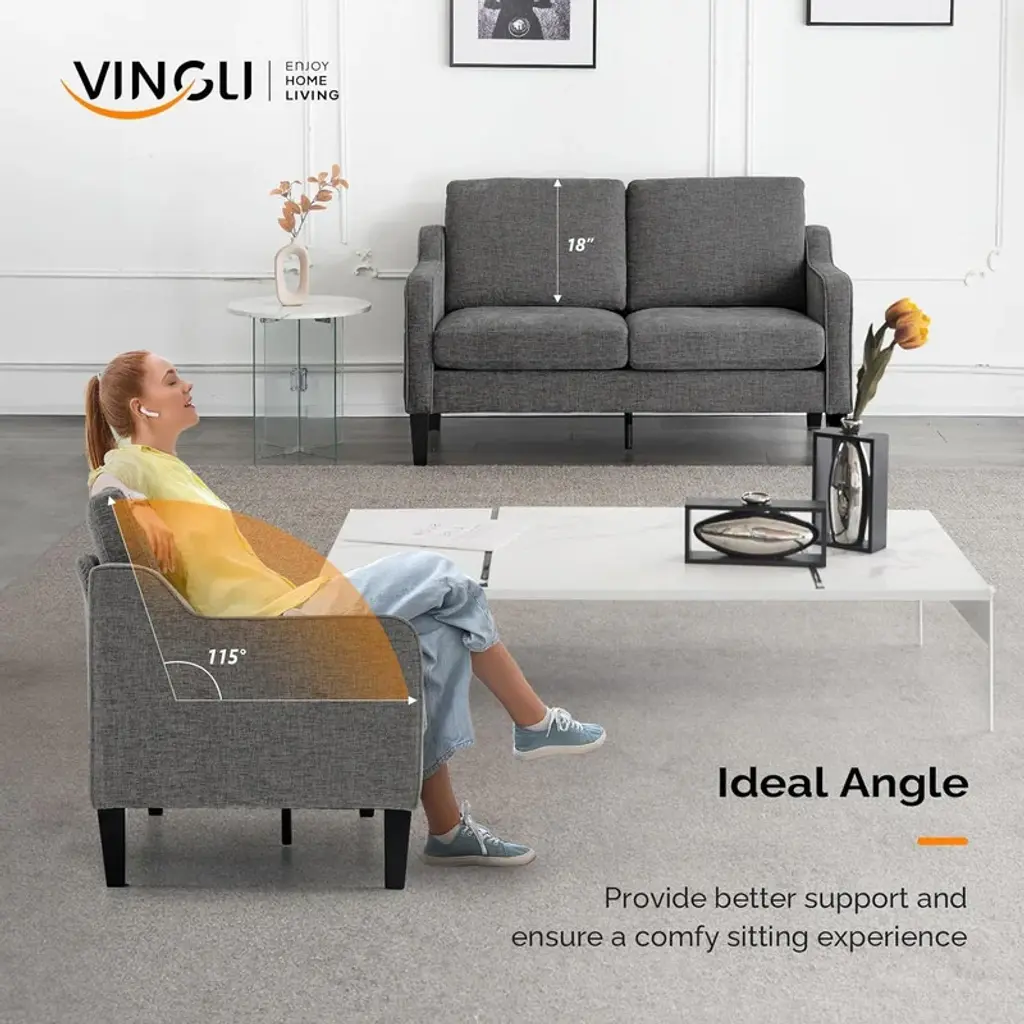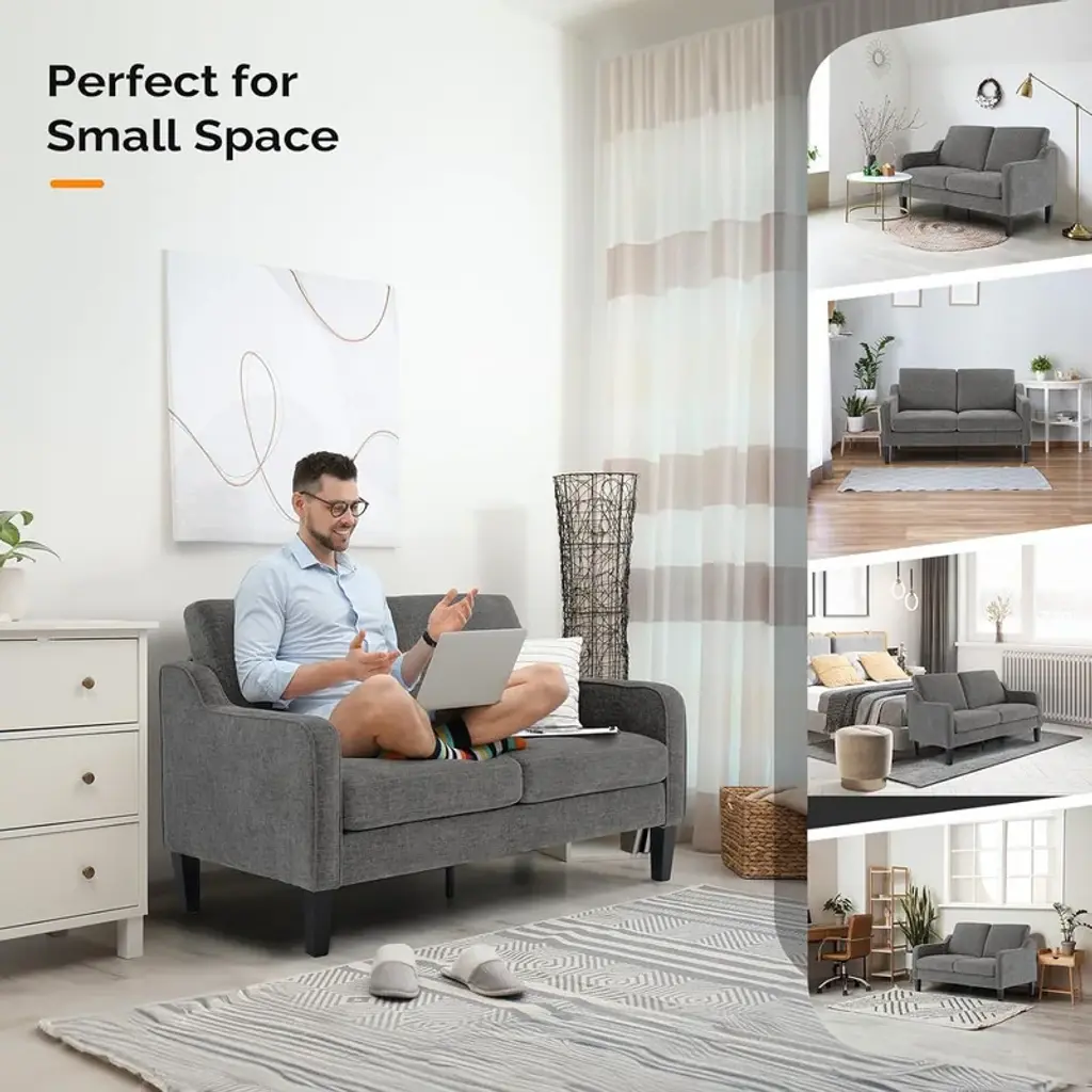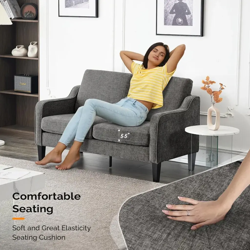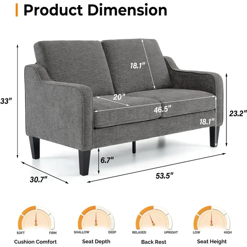 2-Seater Modern Upholstered Chenille Sofa Indoor Loveseat Sofa - Grey