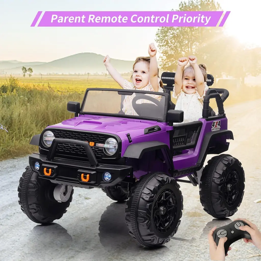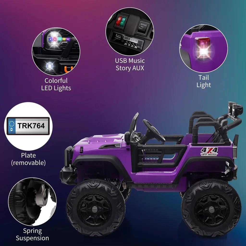 24v Kids Ride-On Truck With Remote Control, 19.7" Seat Width 2-Seater Electric Toy - Purple