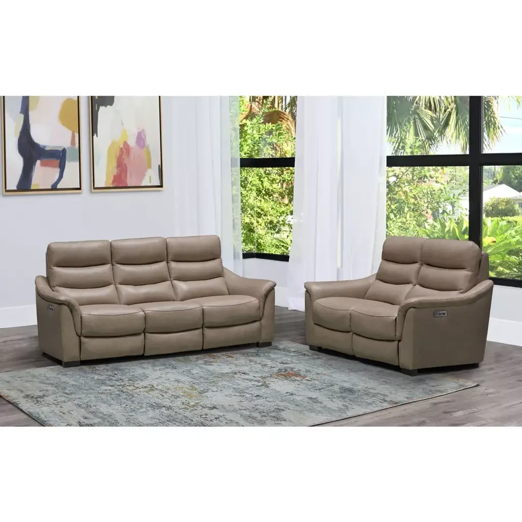 2pc Seymour Loveseat and Sofa Power Reclining Leather Set Beige - Abbyson Living