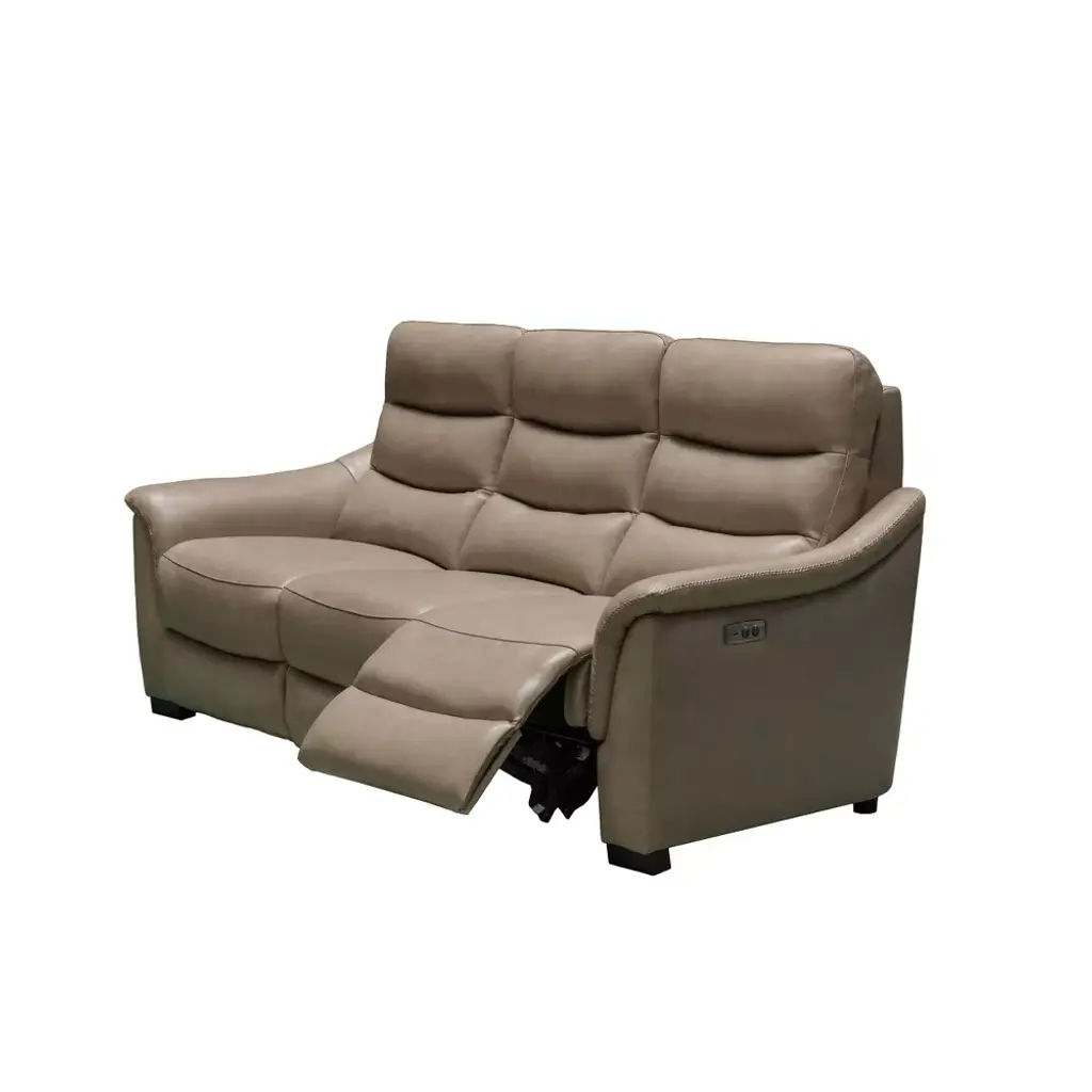 Create all the seating you need in a traditional living room with the Seymour 2-piece Power Reclining Leather Set. This traditional sofa and loveseat feature a supremely relaxing power reclining headrests that can be customized for the perfect ergonomic position. Plush cushions and padded armrests offer hand stitching details for an exquisite accent. This elegant leather sofa and loveseat recliner are covered entirely a beige top grain leather and matching faux leather upholstery that provides a breathable, smooth seat.