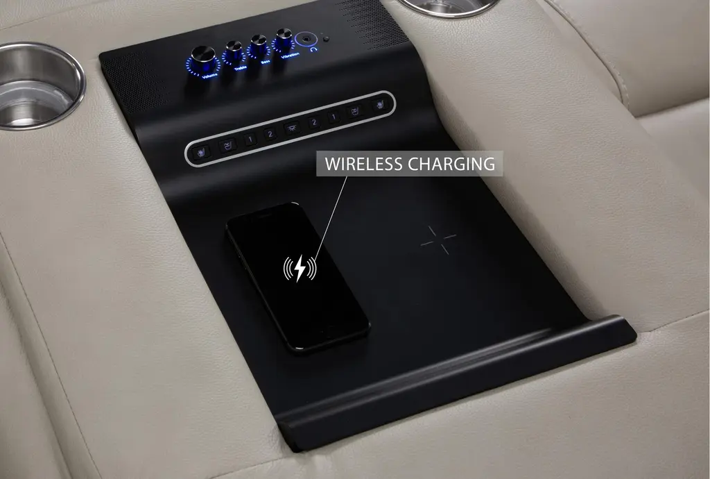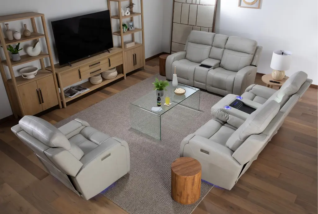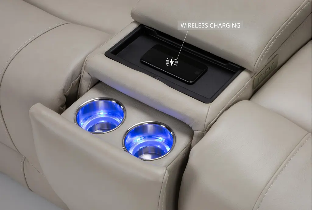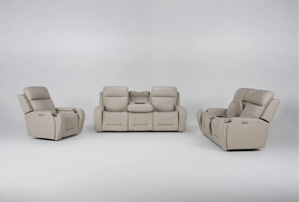 3 Piece Matrix Cream Leather Power Zero Gravity Reclining Audio Living Room Set With Sofa Console Loveseat & Recliner
