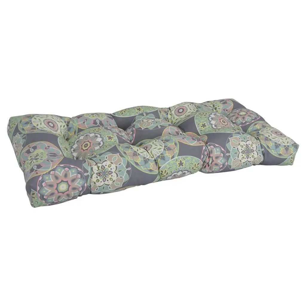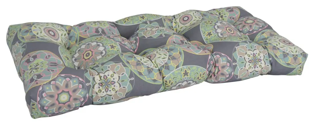 Add a splash of color and style to your home furnishings with this loveseat/ bench cushion. This cushion features a classic tufted cushion design and are available in a wide variety of striking patterns of UV and weather-resistant spun polyester outdoor fabric.