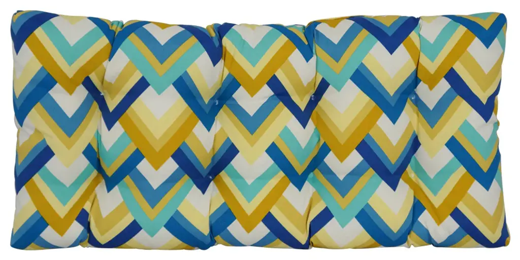 Add a splash of color and style to your home furnishings with this loveseat/ bench cushion. This cushion features a classic tufted cushion design and are available in a wide variety of striking patterns of UV and weather-resistant spun polyester outdoor fabric.