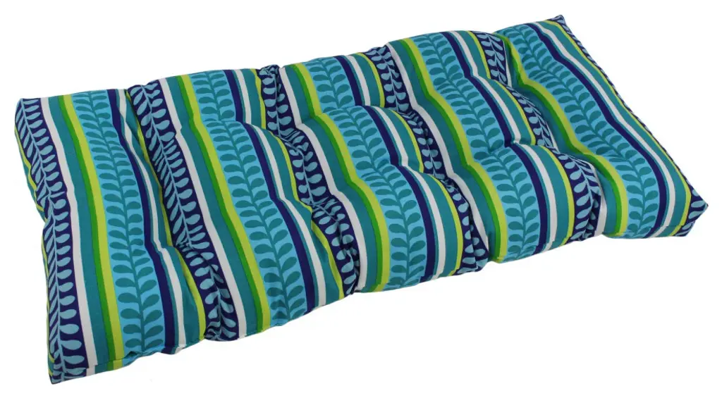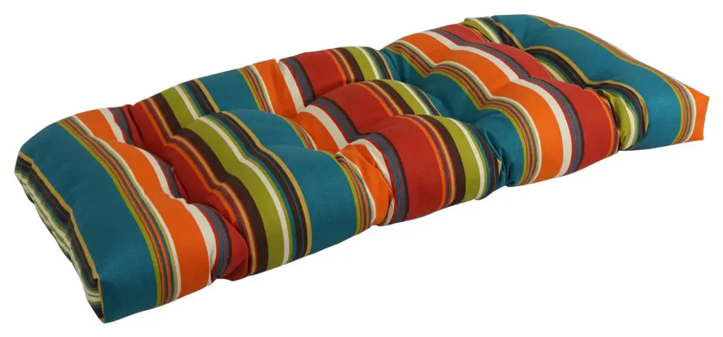 Add a splash of color and style to your home furnishings with this loveseat/ bench cushion. This cushion features a classic tufted cushion design and are available in a wide variety of striking patterns of UV and weather-resistant spun polyester outdoor fabric.