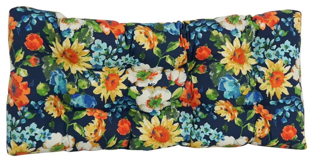 Add a splash of color and style to your home furnishings with this loveseat/ bench cushion. This cushion features a classic tufted cushion design and are available in a wide variety of striking patterns of UV and weather-resistant spun polyester outdoor fabric.