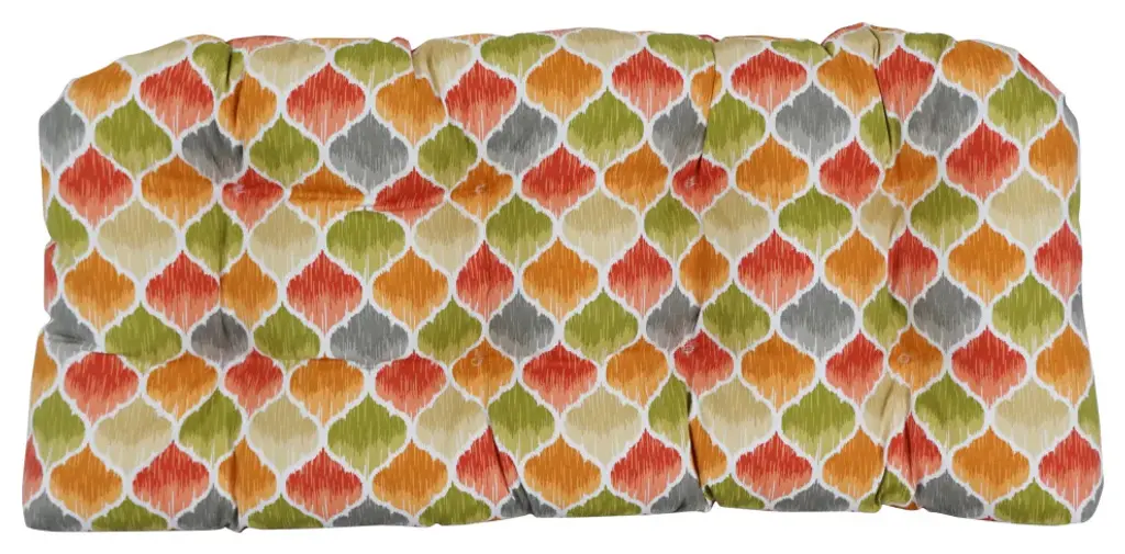 Add a splash of color and style to your home furnishings with this loveseat/ bench cushion. This cushion features a classic tufted cushion design and is available in a wide variety of striking patterns of UV and weather-resistant spun polyester outdoor fabric.