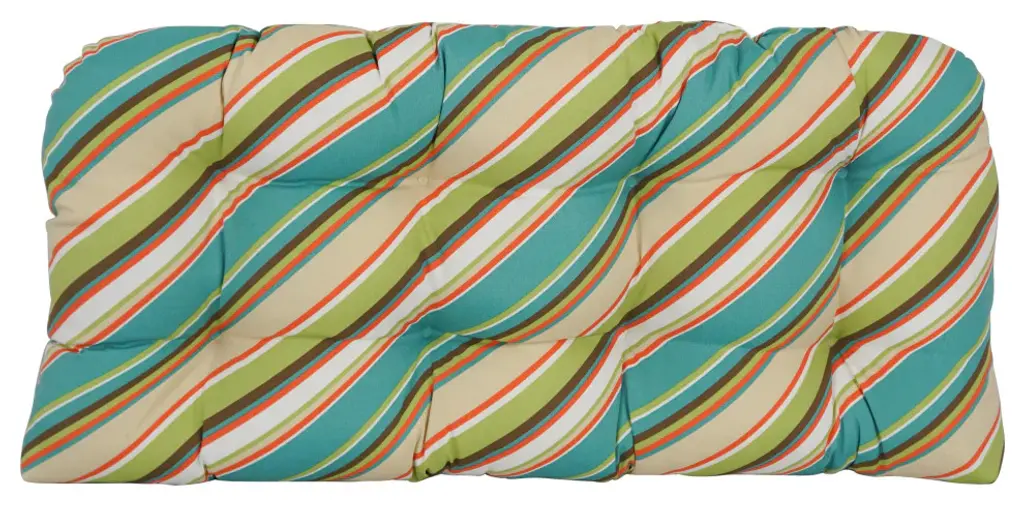 Add a splash of color and style to your home furnishings with this loveseat/ bench cushion. This cushion features a classic tufted cushion design and is available in a wide variety of striking patterns of UV and weather-resistant spun polyester outdoor fabric.