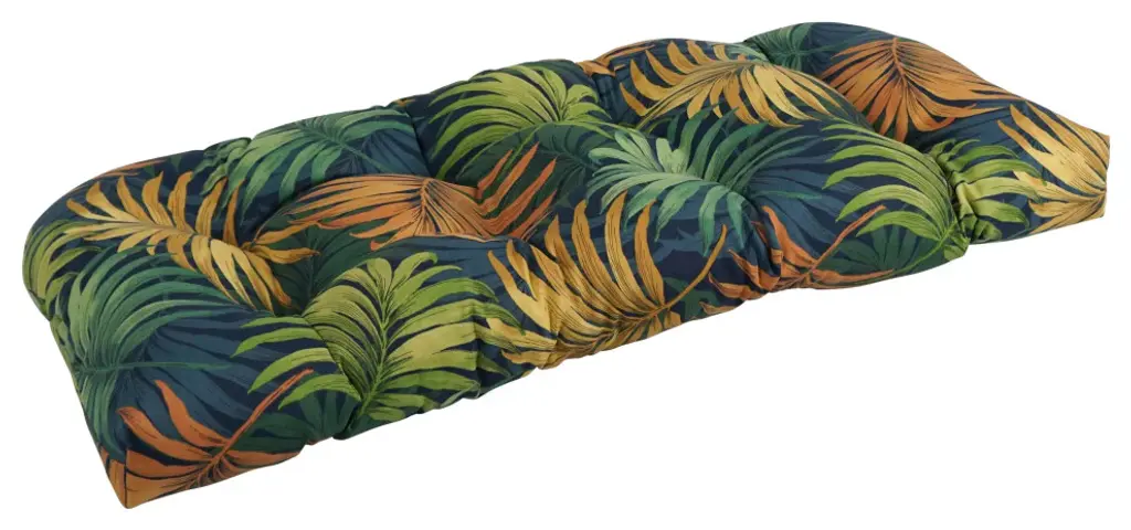 Add a splash of color and style to your home furnishings with this loveseat/ bench cushion. This cushion features a classic tufted cushion design and is available in a wide variety of striking patterns of UV and weather-resistant spun polyester outdoor fabric.