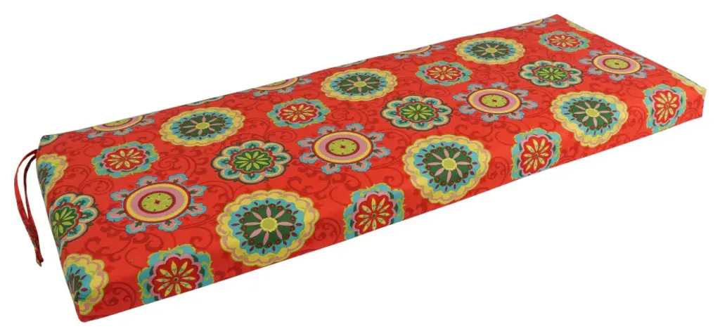 Add a splash of vibrant color and radiant style to your patio furnishings with this outdoor loveseat/ bench cushion. This cushion features a classic rectangular cushion style and is available in a wide variety of patterns of premium spun polyester outdoor fabric.
