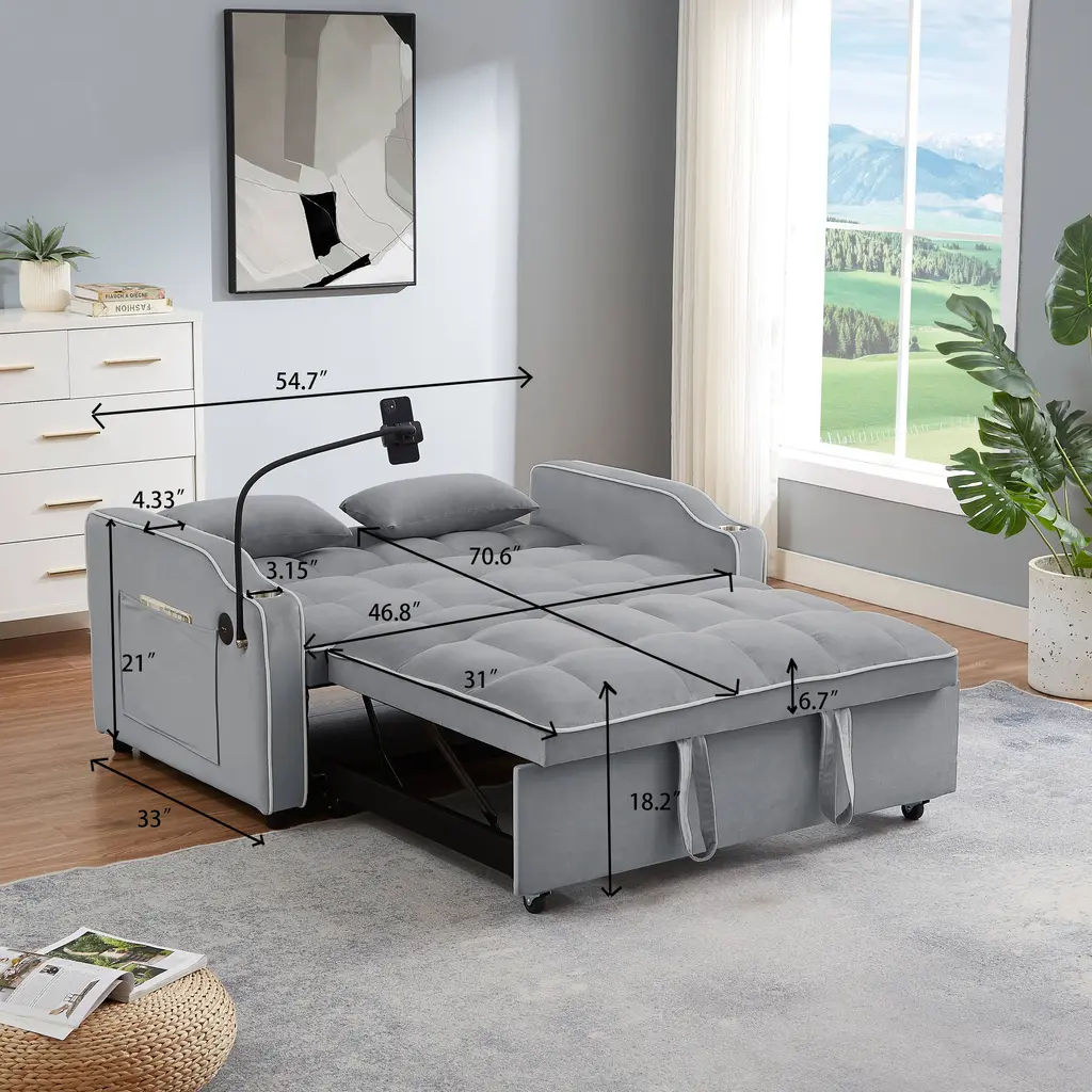 54" Gray Loveseat Sofa, Living Room 2-Seater Sofa Couch With Pull-Out Bed, Convertible Sleeper Couch For Apartment, Office - Gray