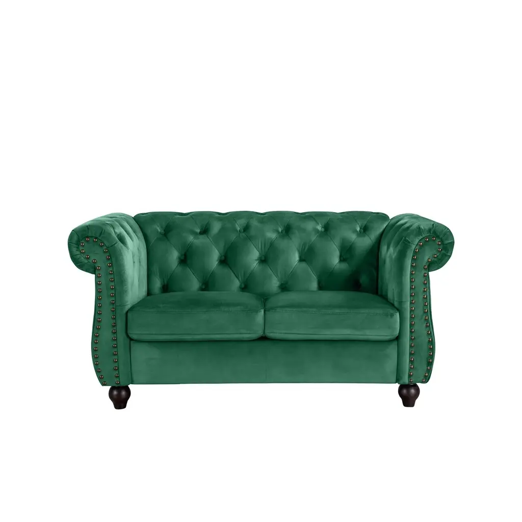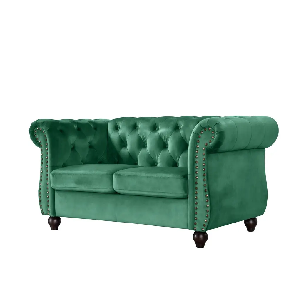 61.4" W Velvet Chesterfield Loveseat For Living Room With Nailheads - Green