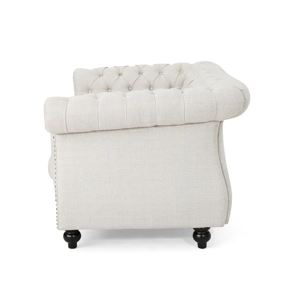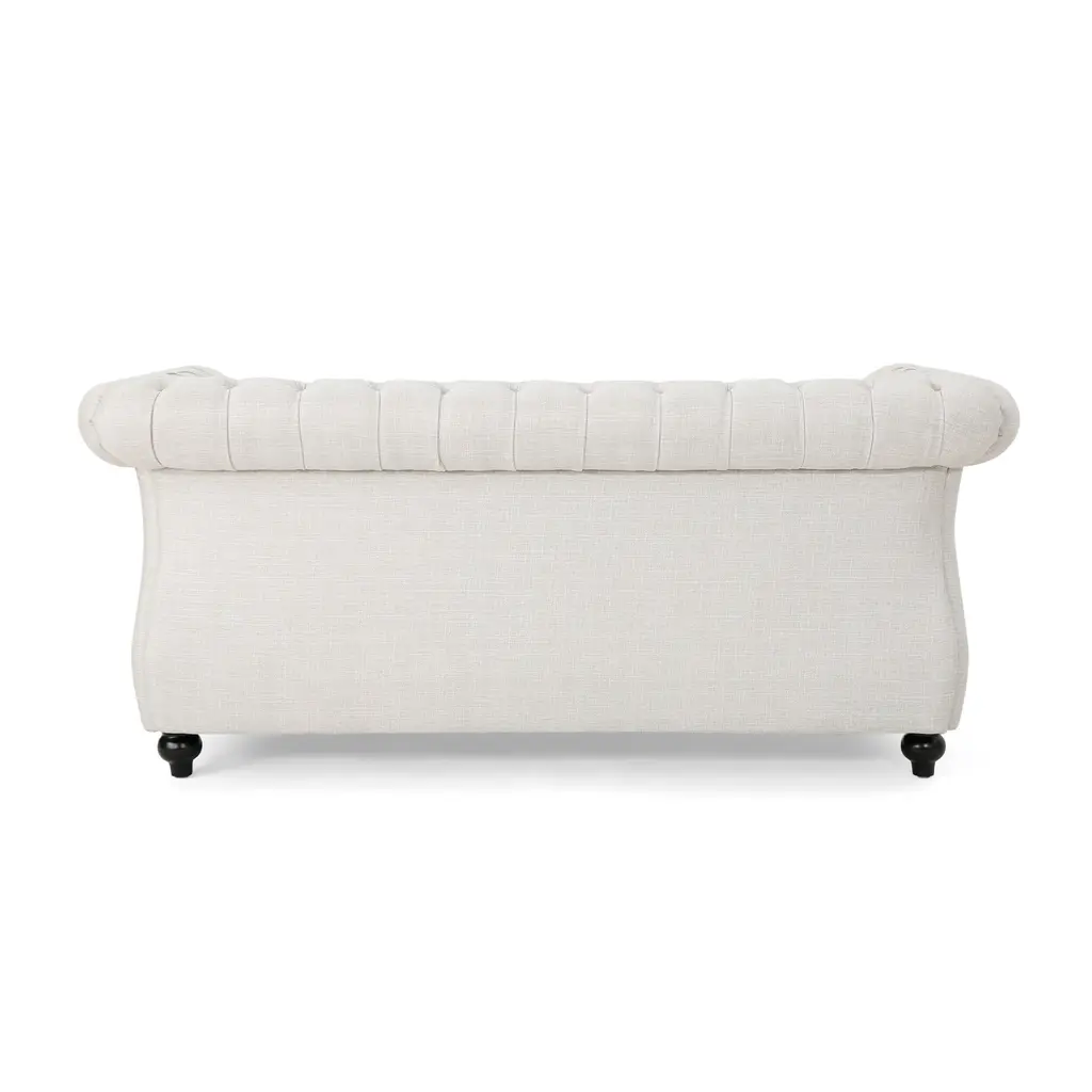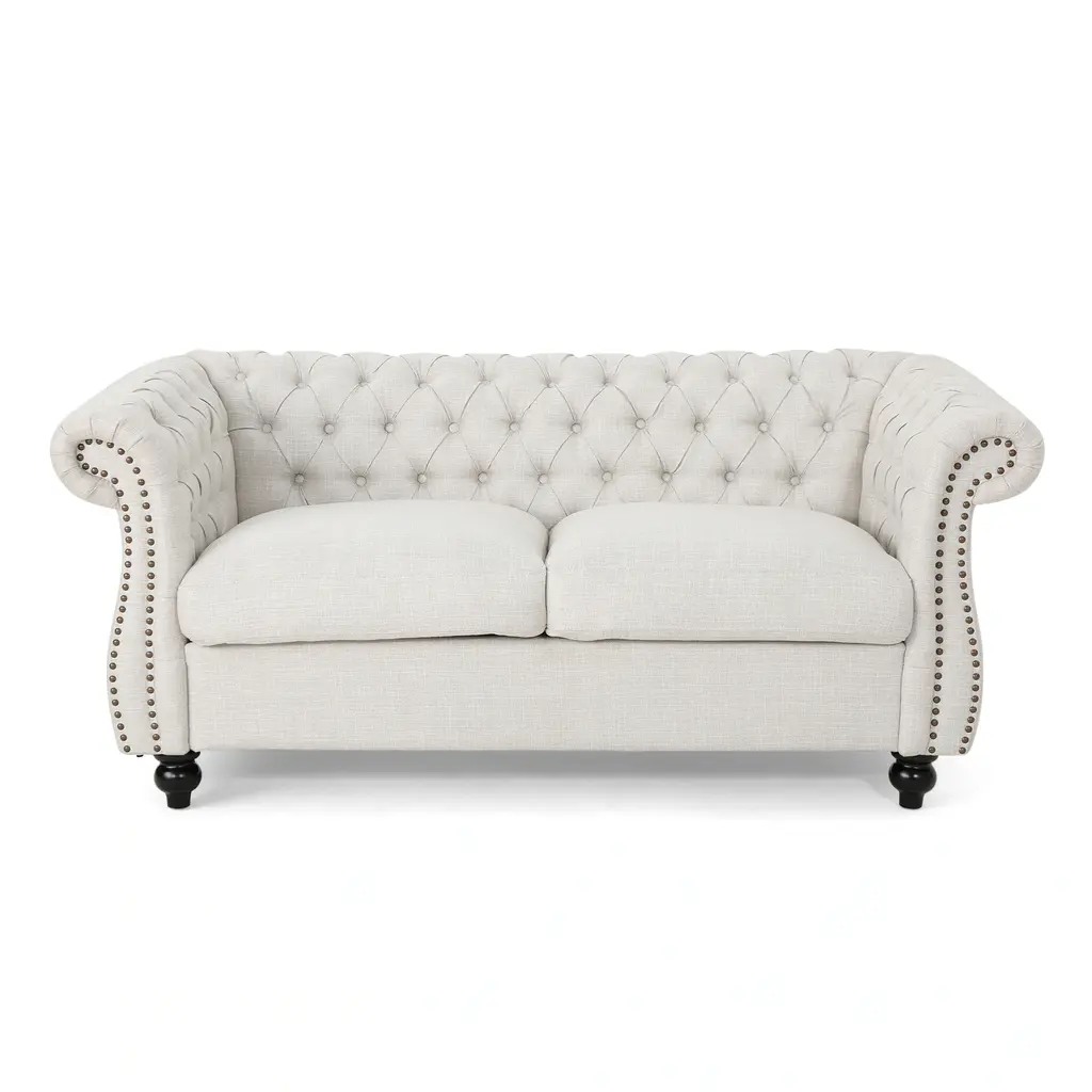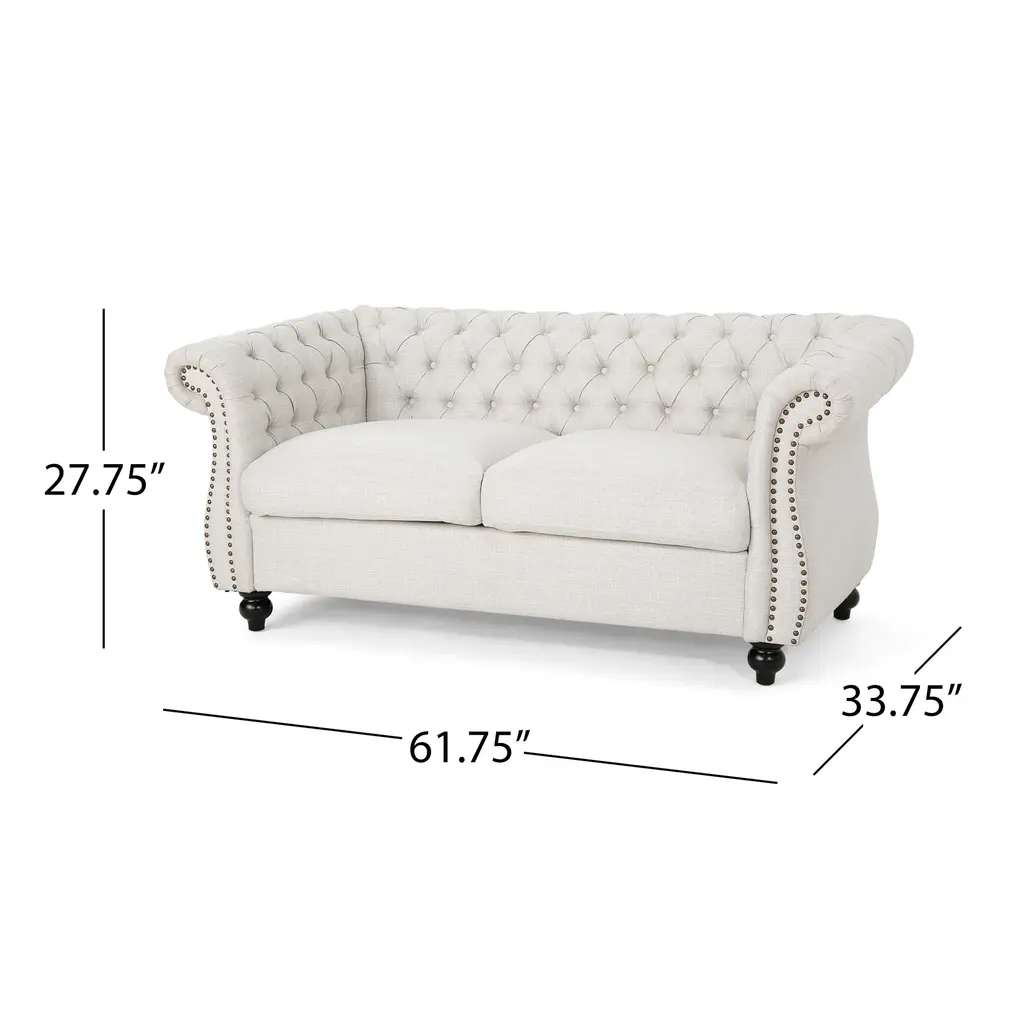 Classic Chesterfield Elegance: Embrace timeless sophistication with this Chesterfield loveseat, featuring deep button tufting, rolled arms, and nailhead accents that exude traditional charm.Comfort and Style Combined: This loveseat offers luxurious comfort with its button-tufted diamond stitching and expertly styled nailhead trim, making it a perfect addition to any refined living space.Features