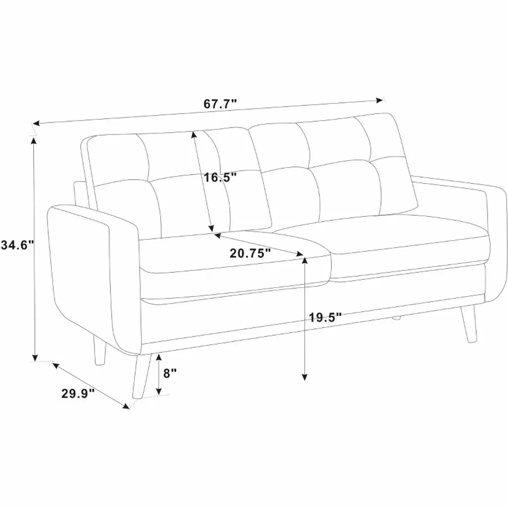 67.7" Wide Mid-century Modern Polyester Tufted Loveseat Sofa With Wooden Legs