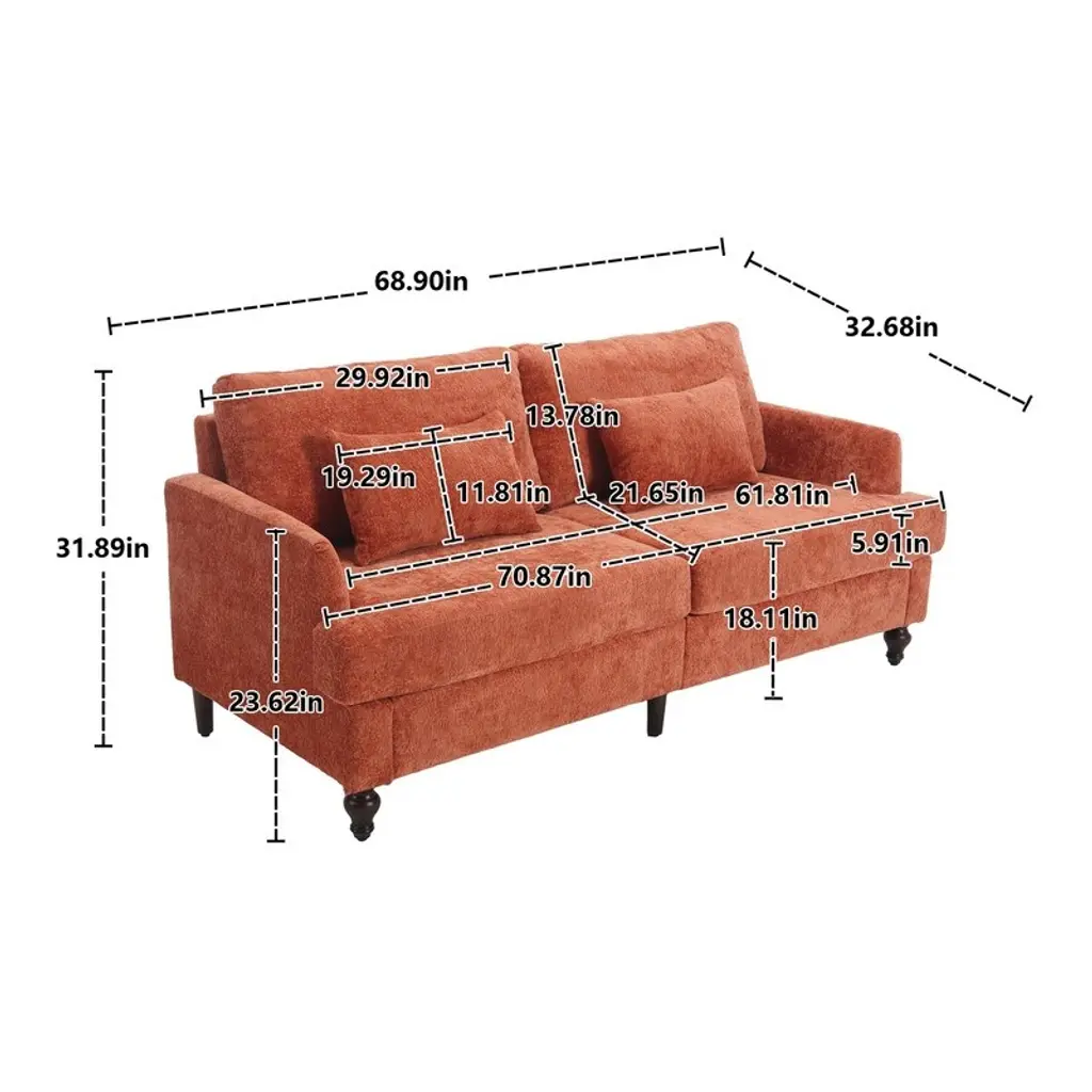 68.9-In Modern Chenille Fabric Loveseat,living Room Couches With Rubber Wood Legs - Dark Orange