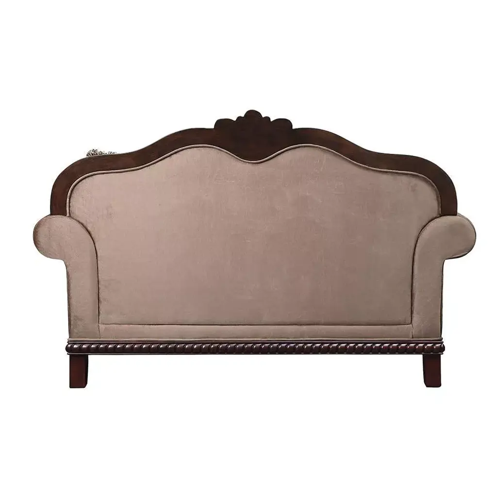 69" Chateau De Ville Fabric Sofa Espresso Finish - Acme Furniture: Carved Wood, Tufted Cushions, Includes 3 Pillows