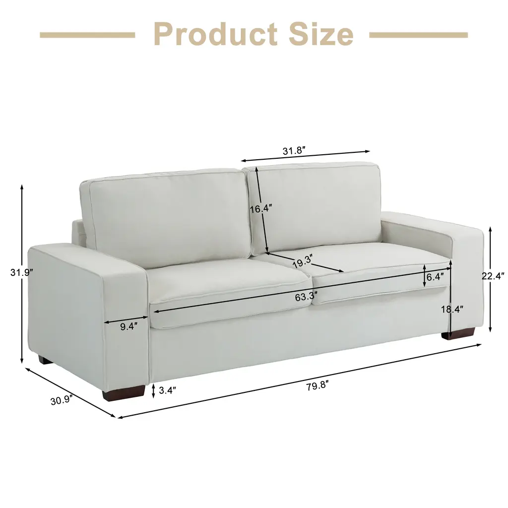 80" Modern Loveseat Couch 3 Seater Sofa - Beige