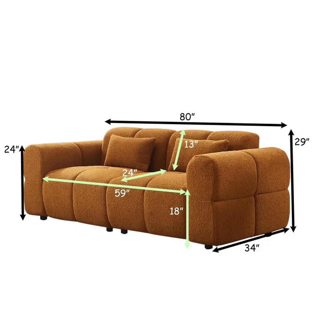 80" Teddy Velvet Cloud Sofa Couch, Lambs Wool Oversize Loveseat - Orange