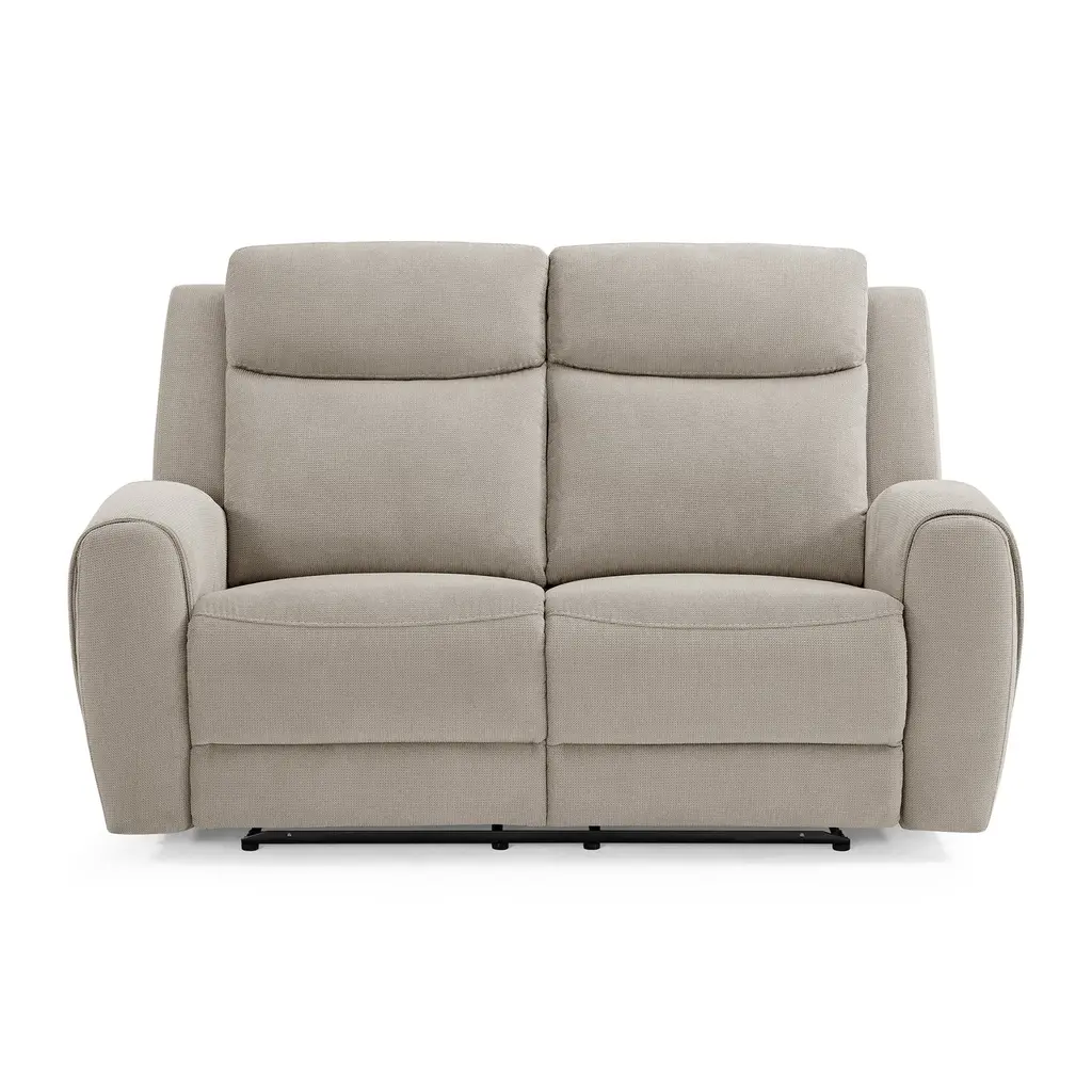 Our Aaron loveseat exudes timeless transitional design. Upholstered in soft and durable fabric, this piece comes in either a manual or infinite power reclining option. Bring home stylish support and superior comfort with no-sag springs and plush foam seat cushions.
