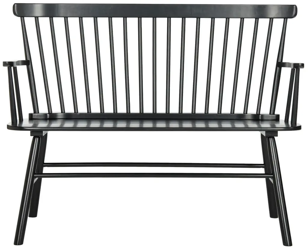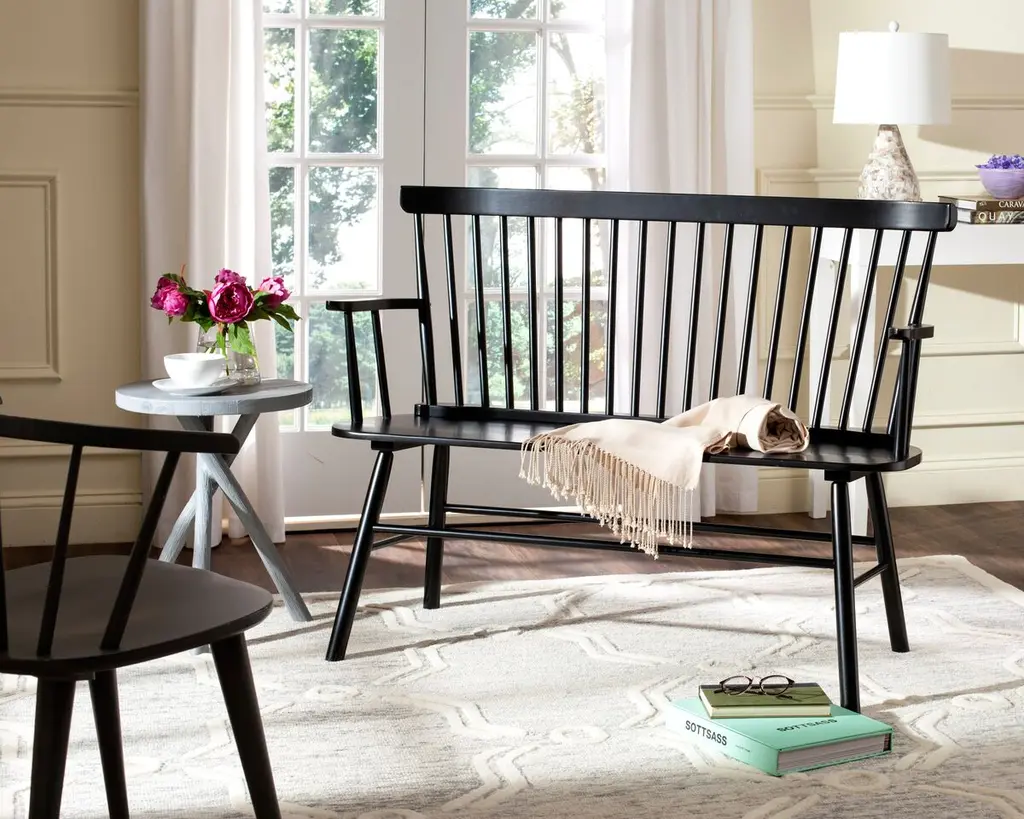 This rubberwood loveseat boasts sleek sophistication thanks to its classic Windsor-style framework and glossy lacquer finish.